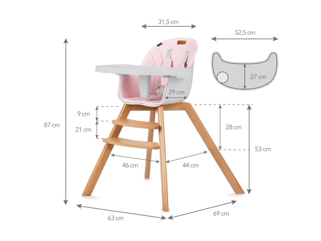 Křeslo na krmení Kidwell NOBISJe stylová, praktická a bezpečná, v krásném skandinávském stylu, skvěle se hodí do každého interiéru domu či bytu a v případě potřeby se z židličky na krmení změní na židličku pro starší dítě.