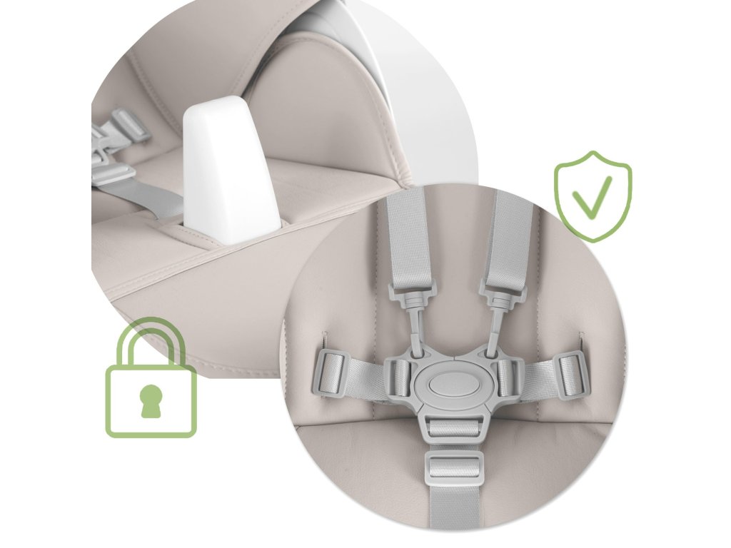 - Funkcia ležadla - vďaka nastaviteľnému operadlu a opierke nôh môžete používať stoličku Belo ako ležadlo od prvých mesiacov života batoľaťa!