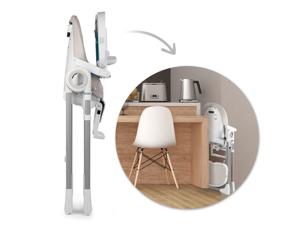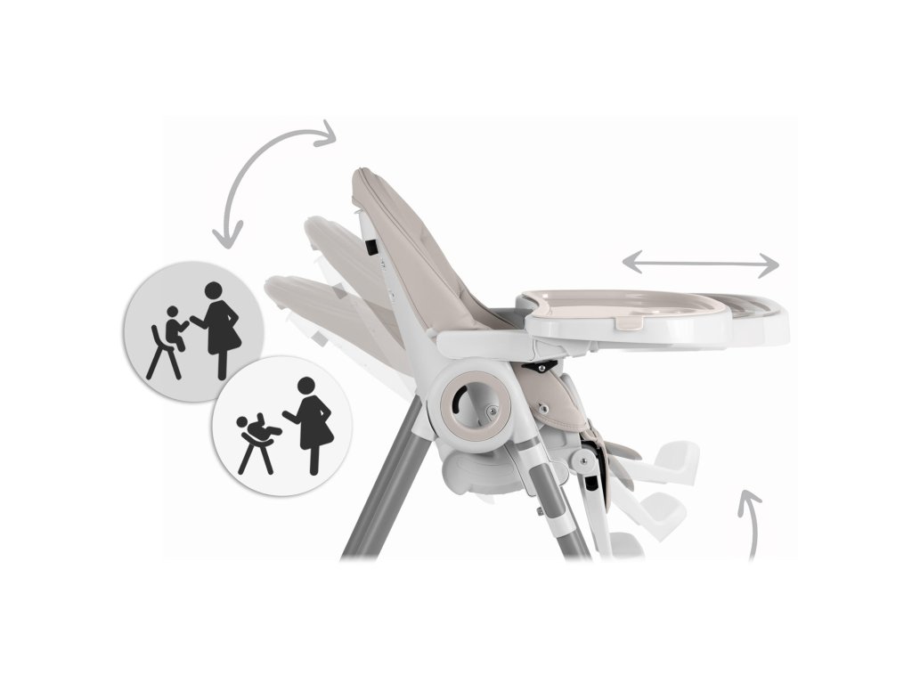 - môžete nastaviť polohu podnosu alebo ho odstrániť, keď chcete dieťa vziať zo stoličky alebo ho priniesť k stolu na rodinnú večeru