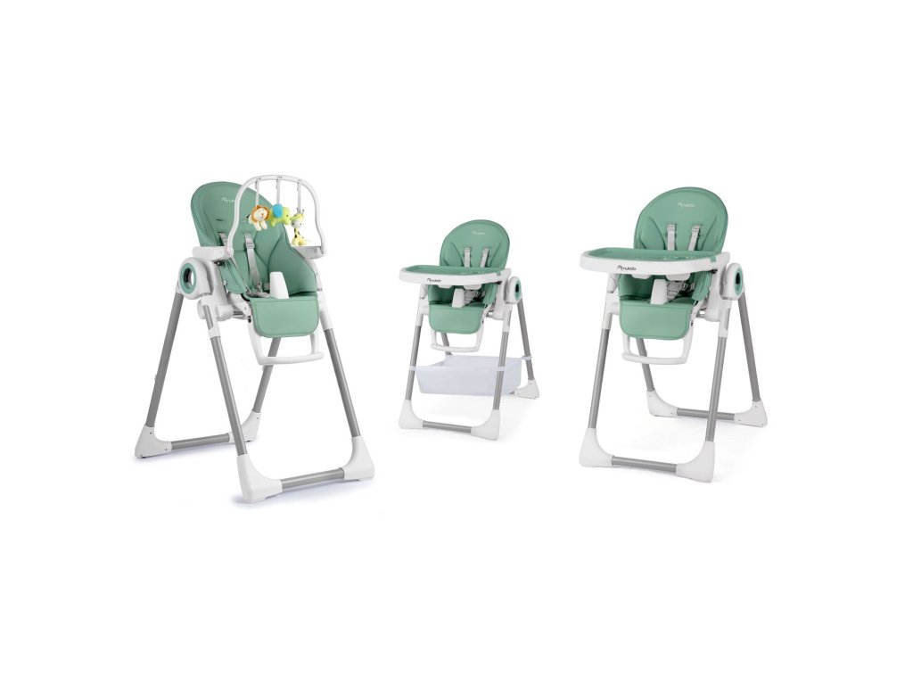 Dětská jídelní židlička se stolkem, lehátko Belo zelené + čelenka s hračkami