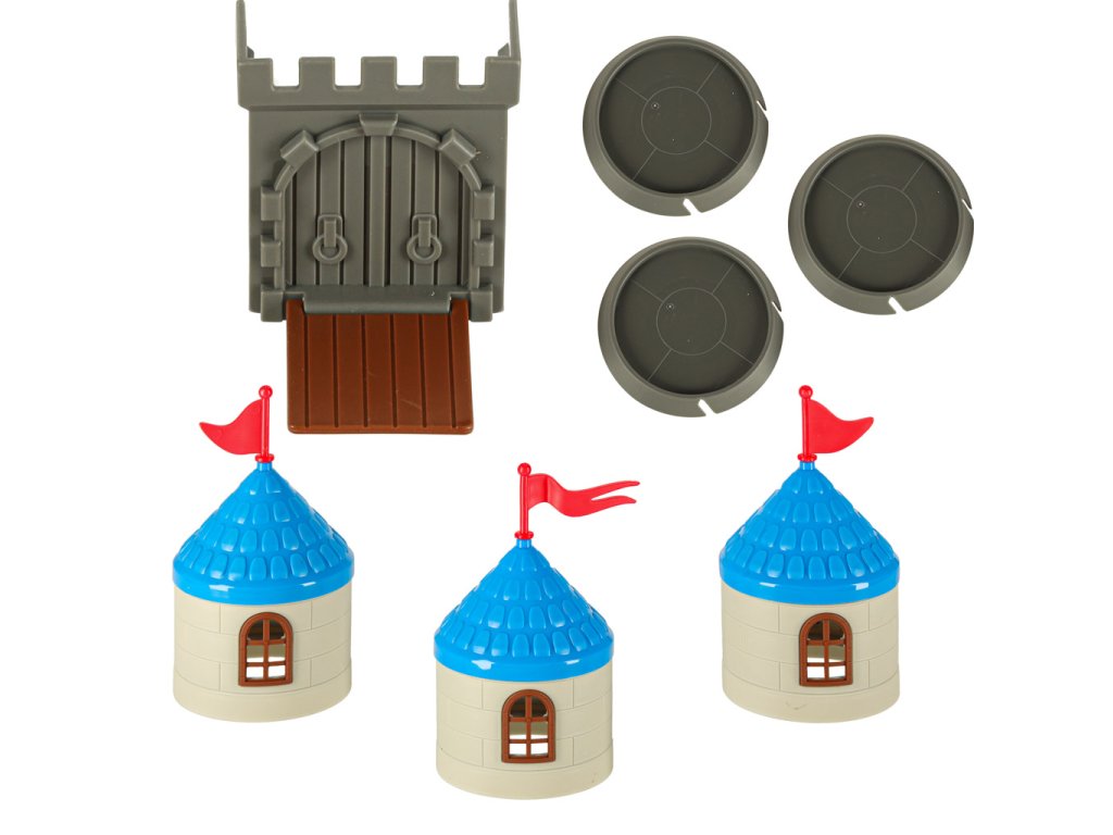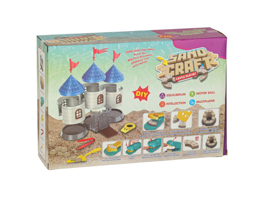 - Písek- Prvky hradu: (základy, věže, dveře a okna, střecha, vlajky)- Písková cihlička- Nářadí na písek (lopatka a kleště)- Třídička písku- Návod k použití.