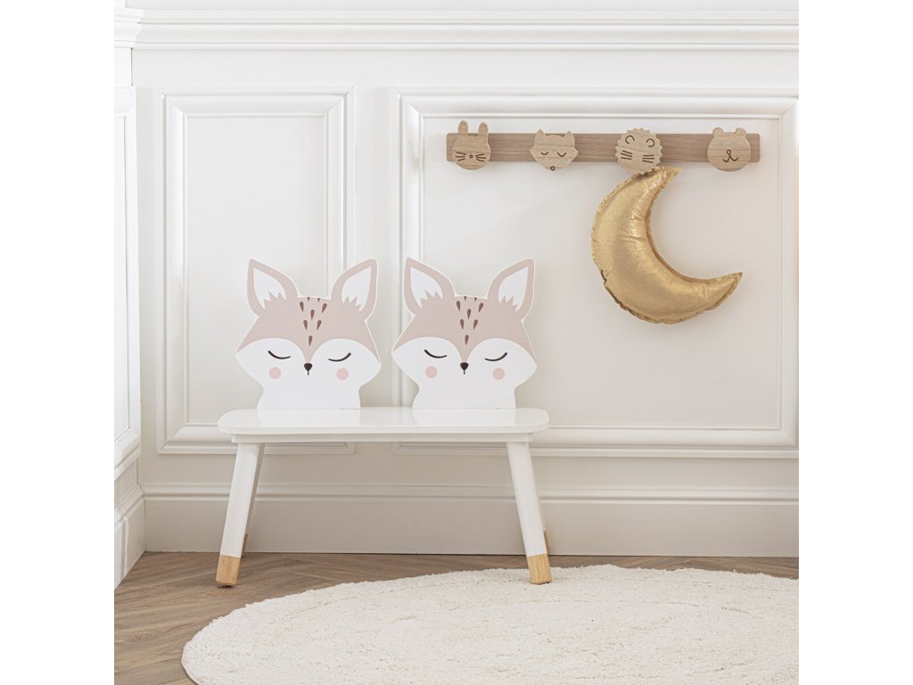 lavička "Fox" děti milující domácí mazlíčky neomrzí. Jeho sídlo představují dvě liščí hlavy. Pro vaše dítě bude praktické, když si na něm bude v klidu číst nebo ukládat knihy.