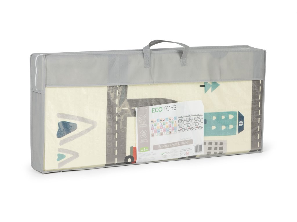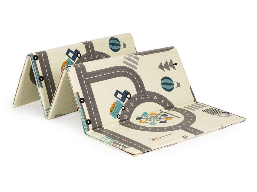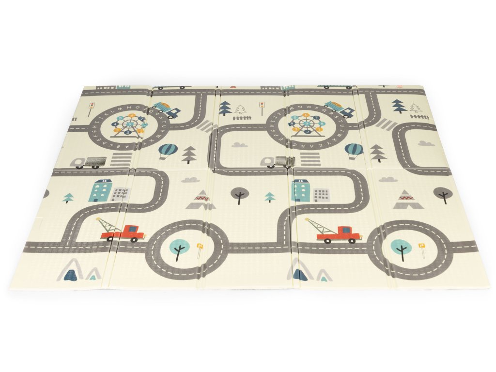 Podložka je velmi praktická a lze ji snadné skládání a rozkládání pro snadné skladování a přenášení . Dvě strany poskytne spoustu zábavy, na jedné straně je plán města s ulicemi, zatímco na druhé straně jsou barevné grafiky zobrazující různá zvířata a ovoce.