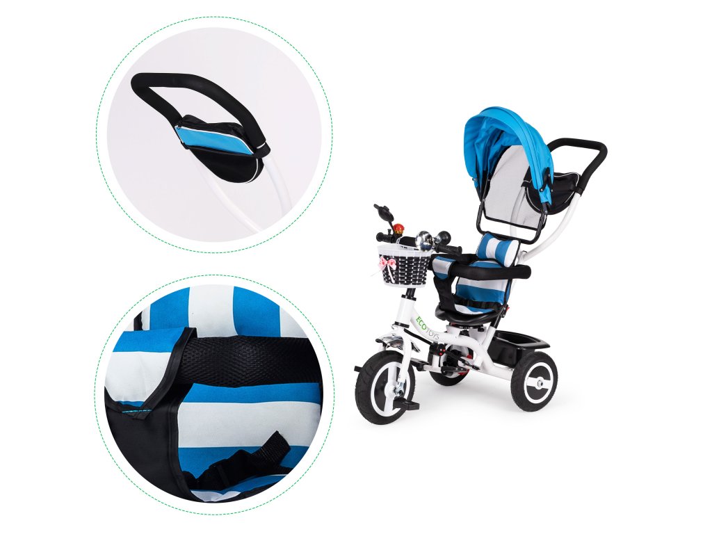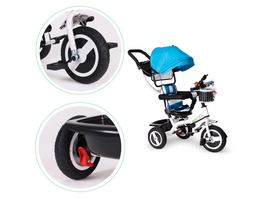 Kolo ECOTOYS kombinuje řadu praktických funkcí, které zajistí, aby vaše dítě pohodlná a bezpečná hra . Kolo má měkké a pohodlné opěradlo která umožňuje batoleti pohodlně sedět a bezpečnostní pásy a ochrana proti pádu ze sedadla. Skládací stříška chrání před deštěm a sluncem . Speciálně tvarovaný rám a otočné sedadlo usnadnit nástup nejmenším dětem.