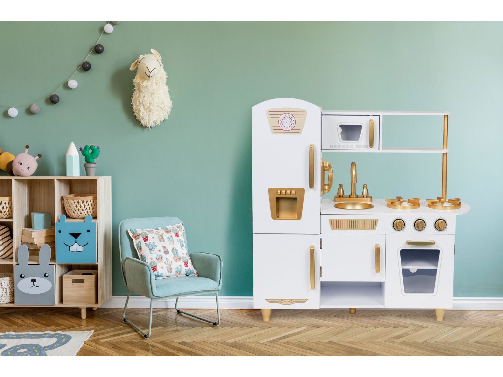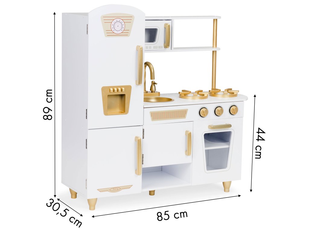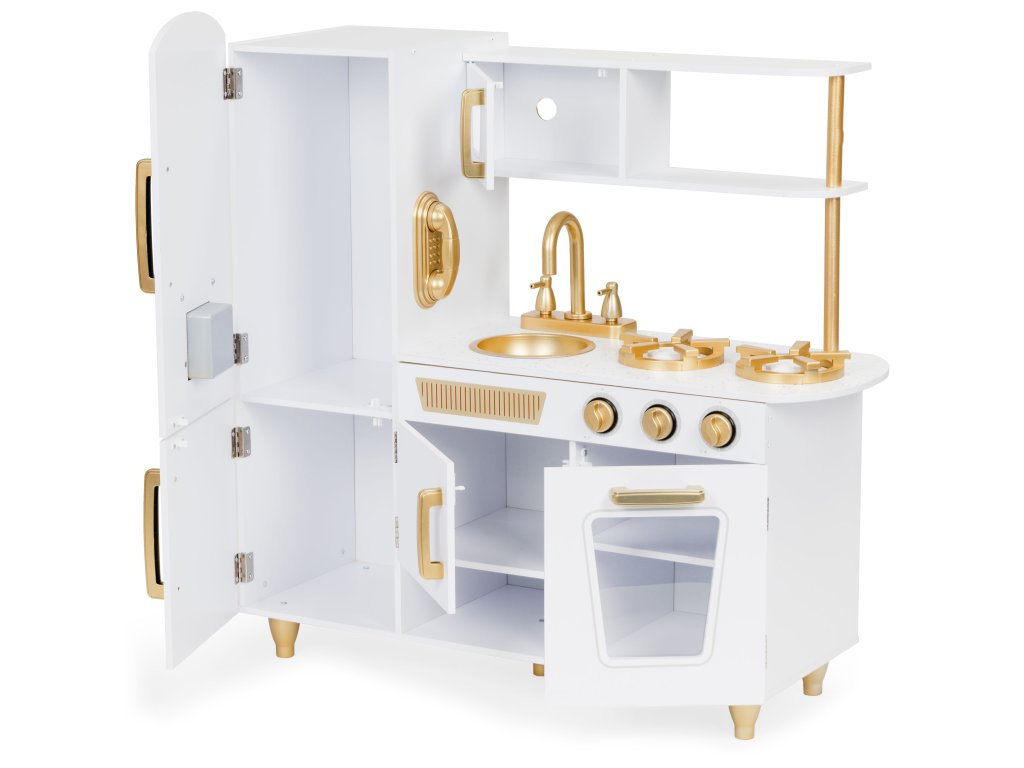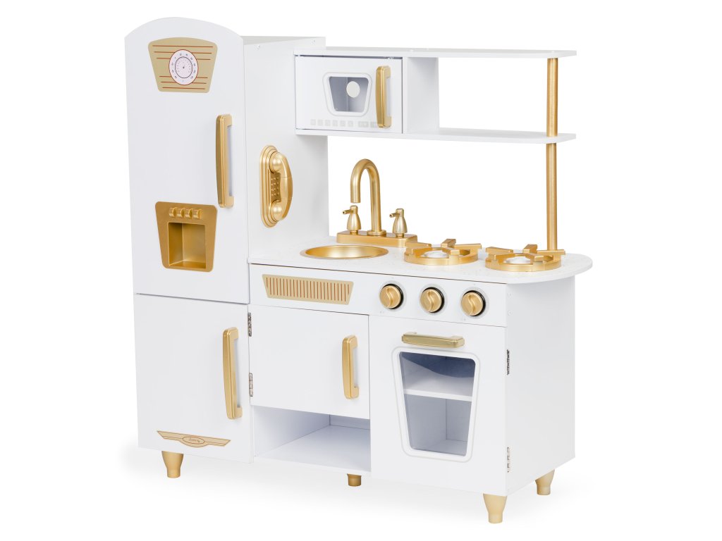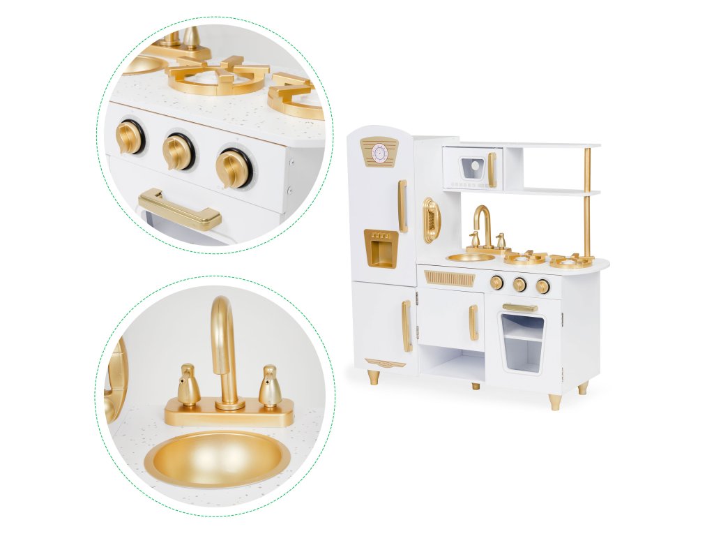 Detská veľká drevená kuchyňa ECOTOYS bielo-zlatá