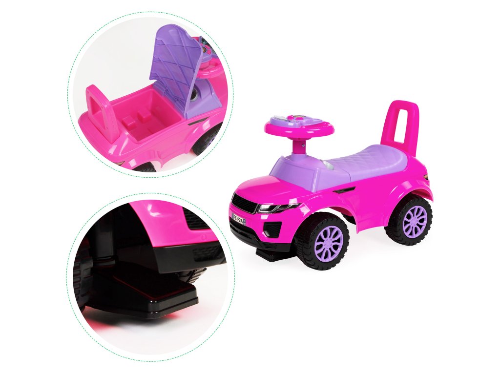 - Otevírací klapka pod sedadlem skrytý funkční úložný prostor pro vše, co malý řidič potřebuje přehrát.