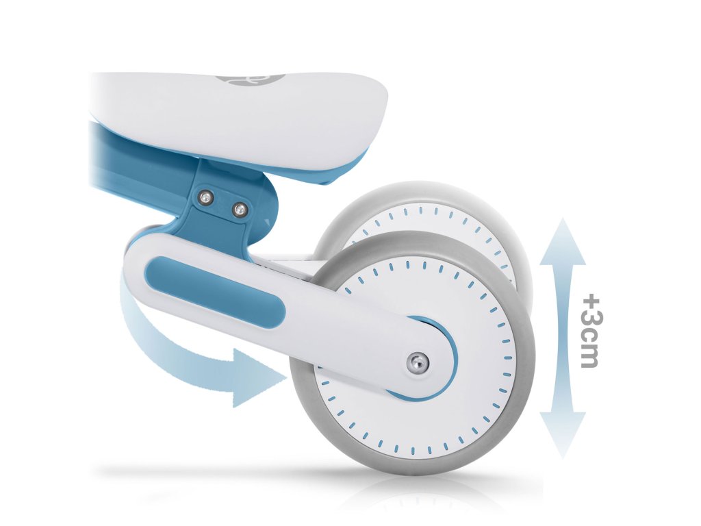 - Lepší přizpůsobení: umožňuje dokonale přizpůsobit výšku sedadla skutečné výšce dítěte, což zvyšuje pohodlí a usnadňuje učení rovnováhy.