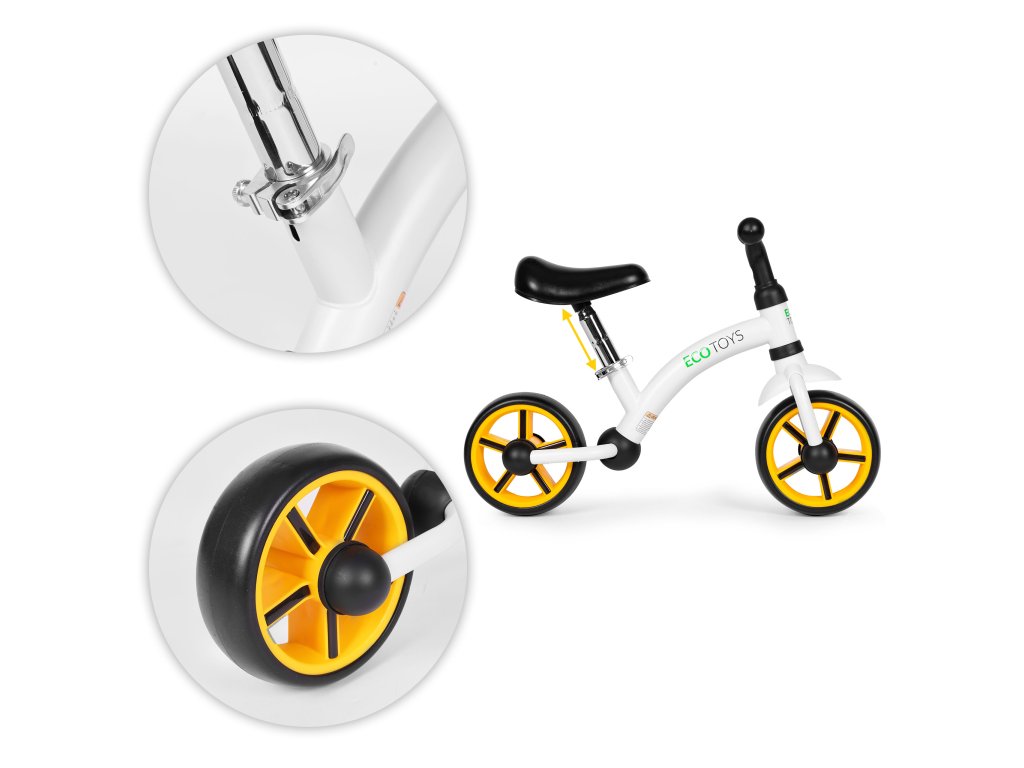 Pro děti od 3 let, kolo ECOTOYS. Práškově lakovaná ocelová konstrukce, nastavitelné sedlo a odolná kola EVA. Podporuje motorické dovednosti a rovnováhu. Ideální pro jízdu v interiéru i venku. Bezpečný a ergonomický design zaručuje dlouhé hodiny zábavy.