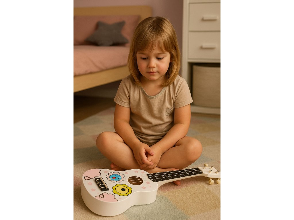 Dětské dřevěné ukulele ECOTOYS, 4 nylonové struny