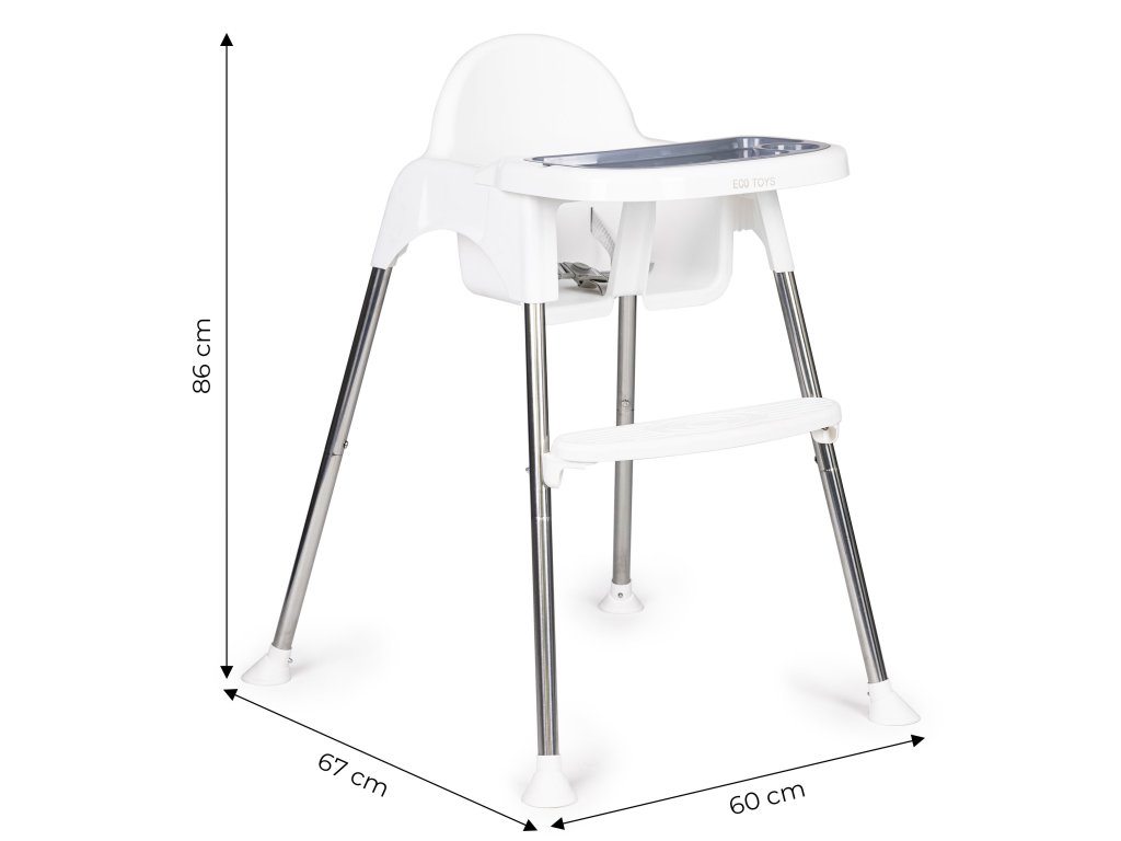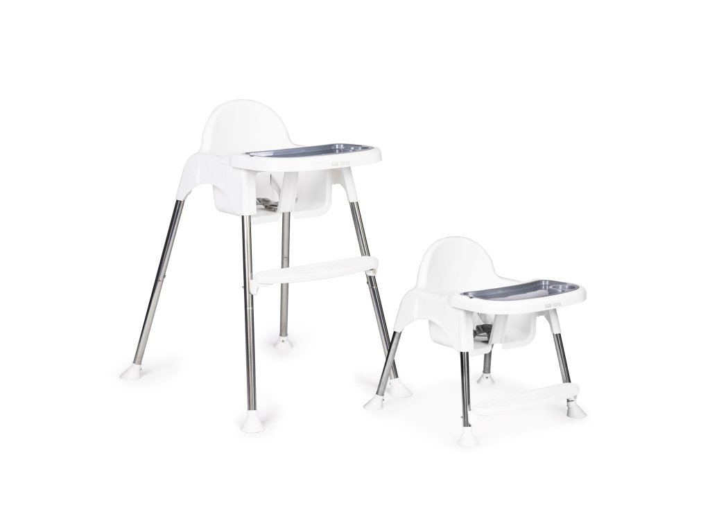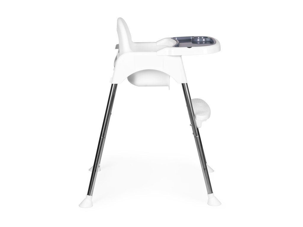 Křeslo má nastavitelná výška. Nohy a opěrku nohou lze snadno demontovat tím se z vysoké židle stane nižší židle. Pokud se vaše dítě osamostatňuje a vy už na něj nemusíte dávat pozor, bude pro něj ideální nižší židlička.