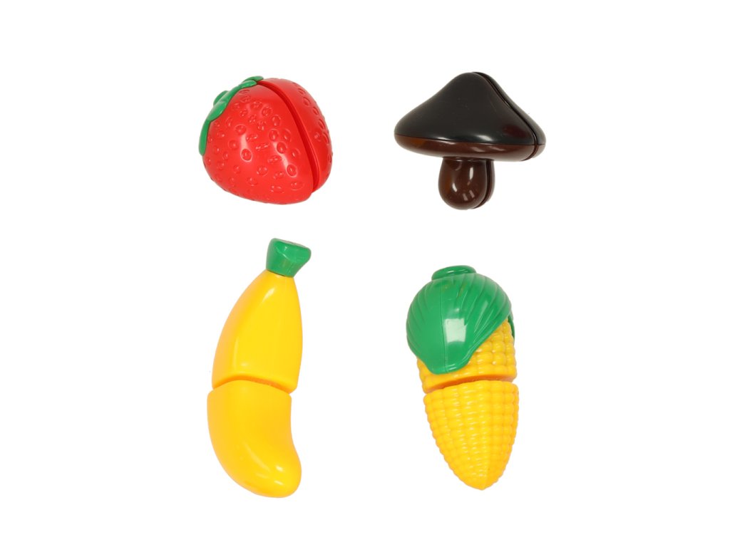 - Plastové příslušenství (mycí prostředek, rajče, limetka, lilek, banán, jahoda, kukuřice, houba, mrkev)