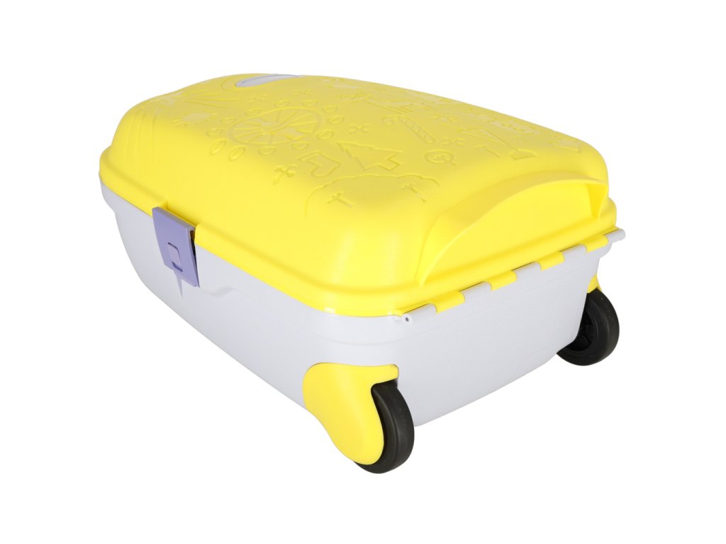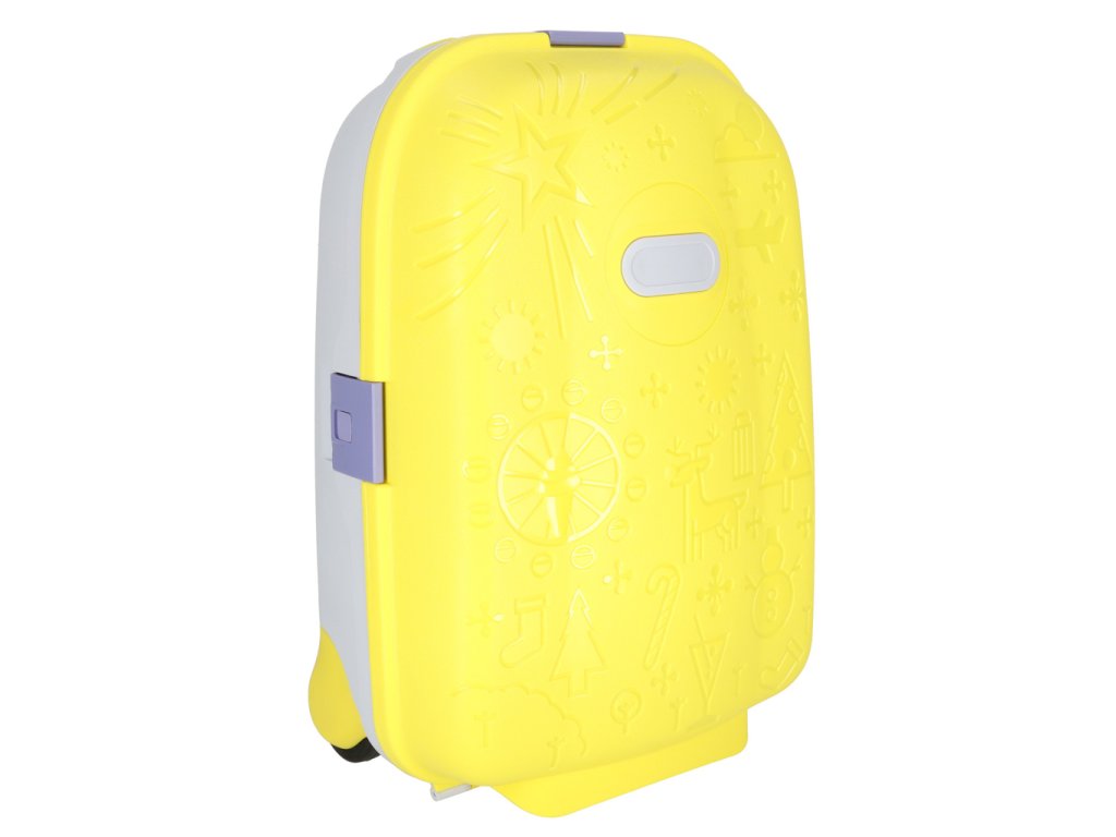 Zakázková aktovka je ideální pro každého malého cestovatele připraven na nová dobrodružství! Žlutá barva a zajímavé vzory upoutá pozornost vašeho dítěte a možná ho dokonce přiměje, aby si sbalilo svůj vlastní kufr. Součástí sady jsou také samolepky na podepsání zavazadla.
