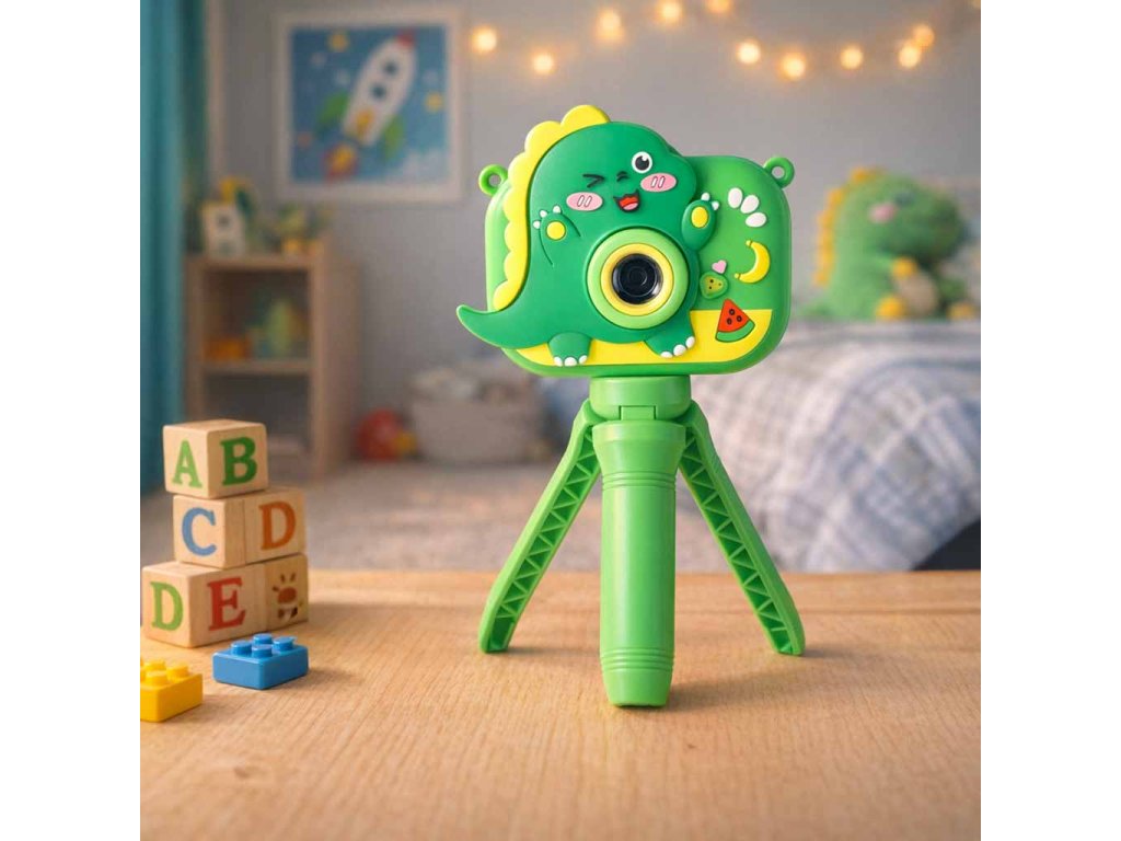 Dětský digitální fotoaparát na stativu dinosaurus zelený