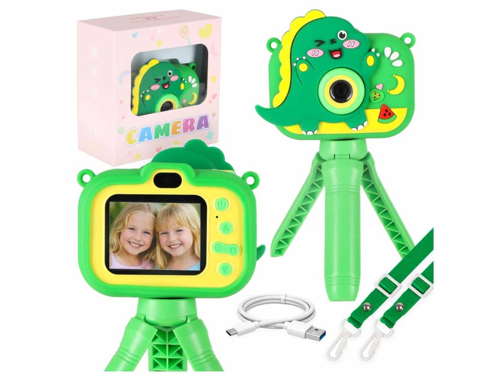 DETSKÝ DIGITÁLNY FOTOAPARÁT NA STATÍVE DINOSAURUS ZELENÝ Obsah súpravy: