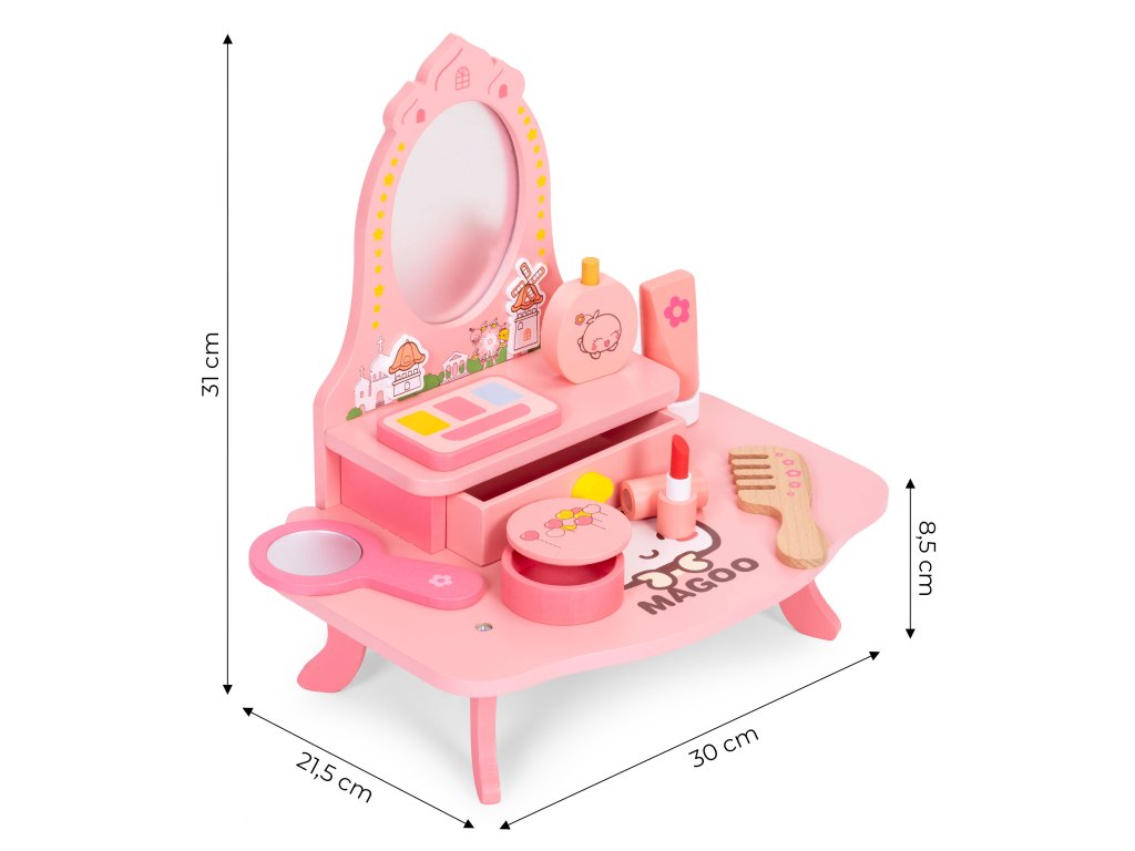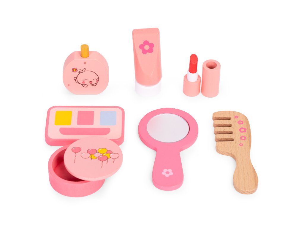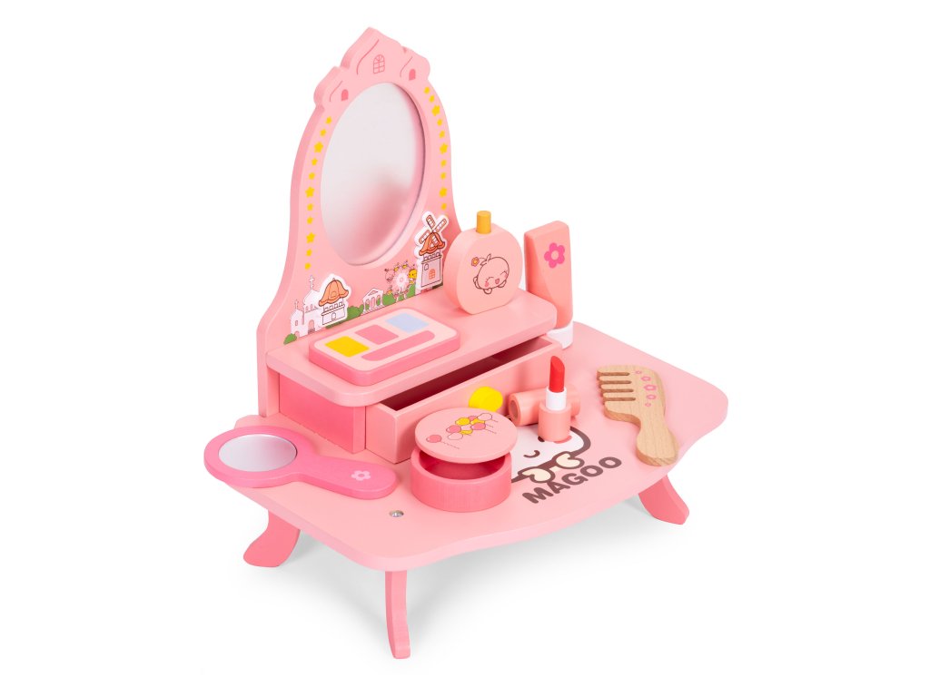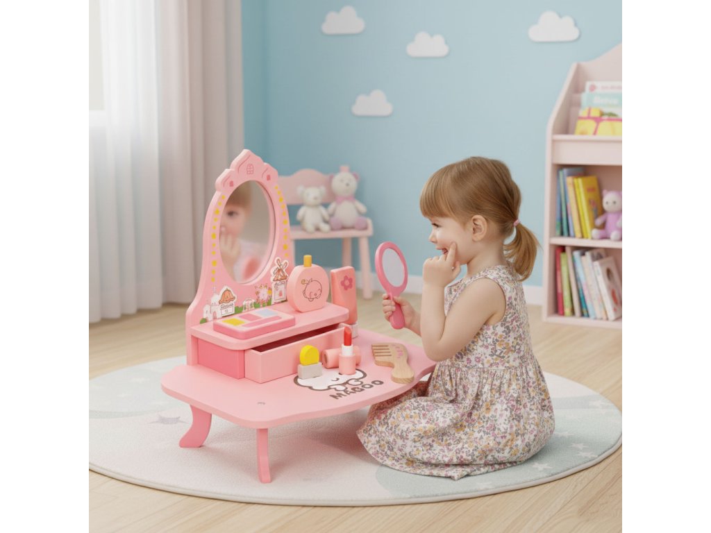 Dětský dřevěný toaletní stolek se zrcadlem a zásuvkou 7 doplňků ECOTOYS
