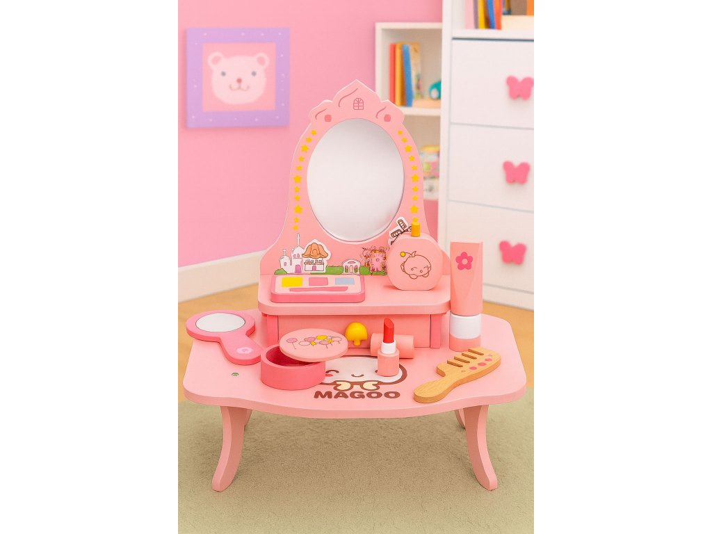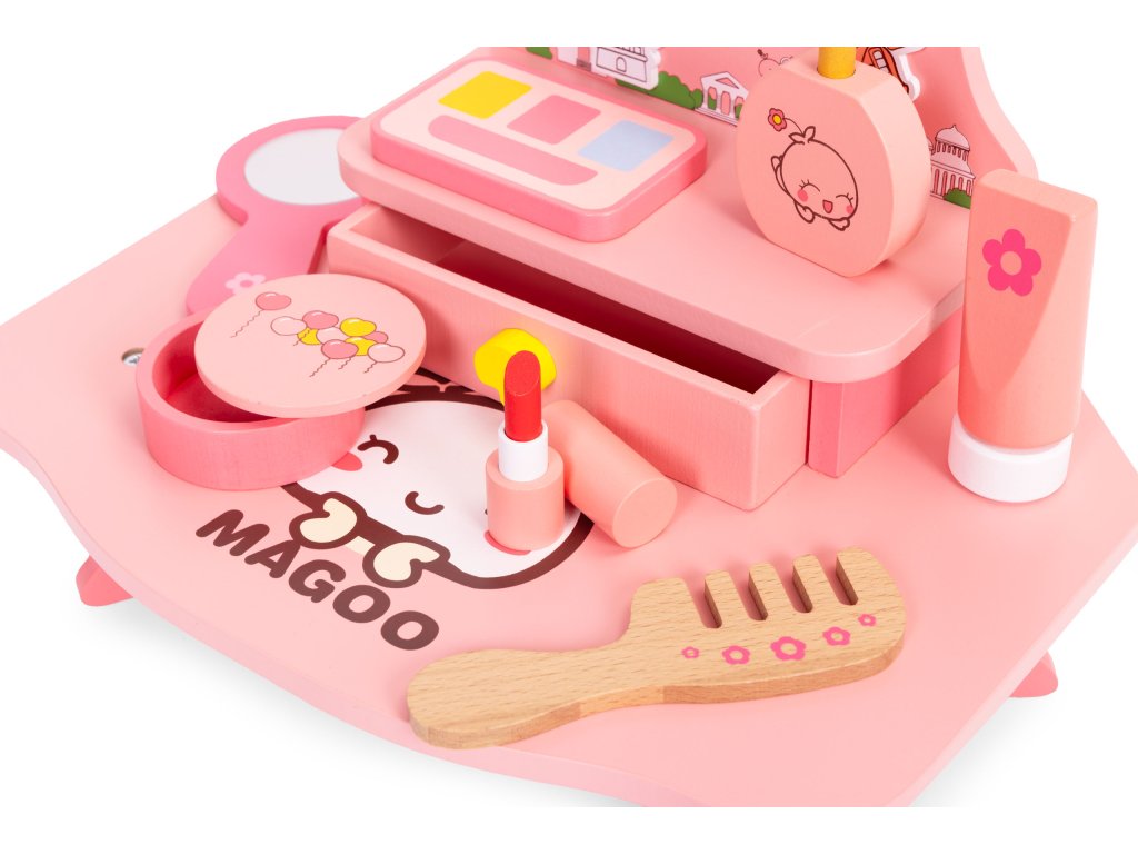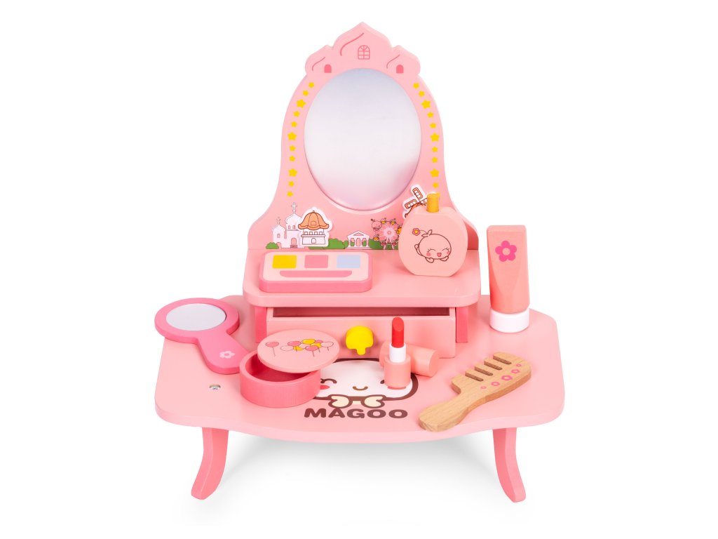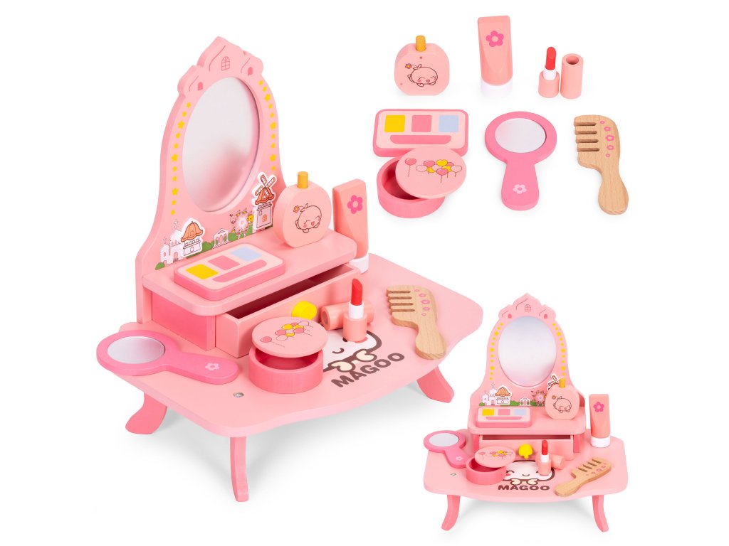 Dětský dřevěný toaletní stolek se zrcadlem a zásuvkou 7 doplňků ECOTOYS
