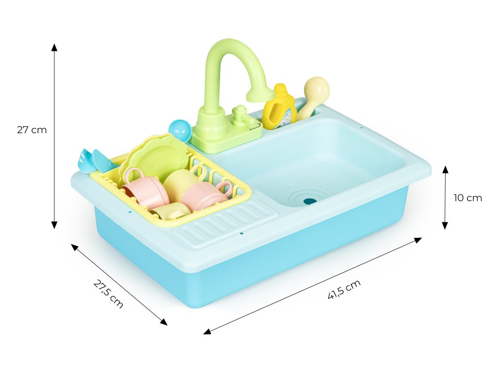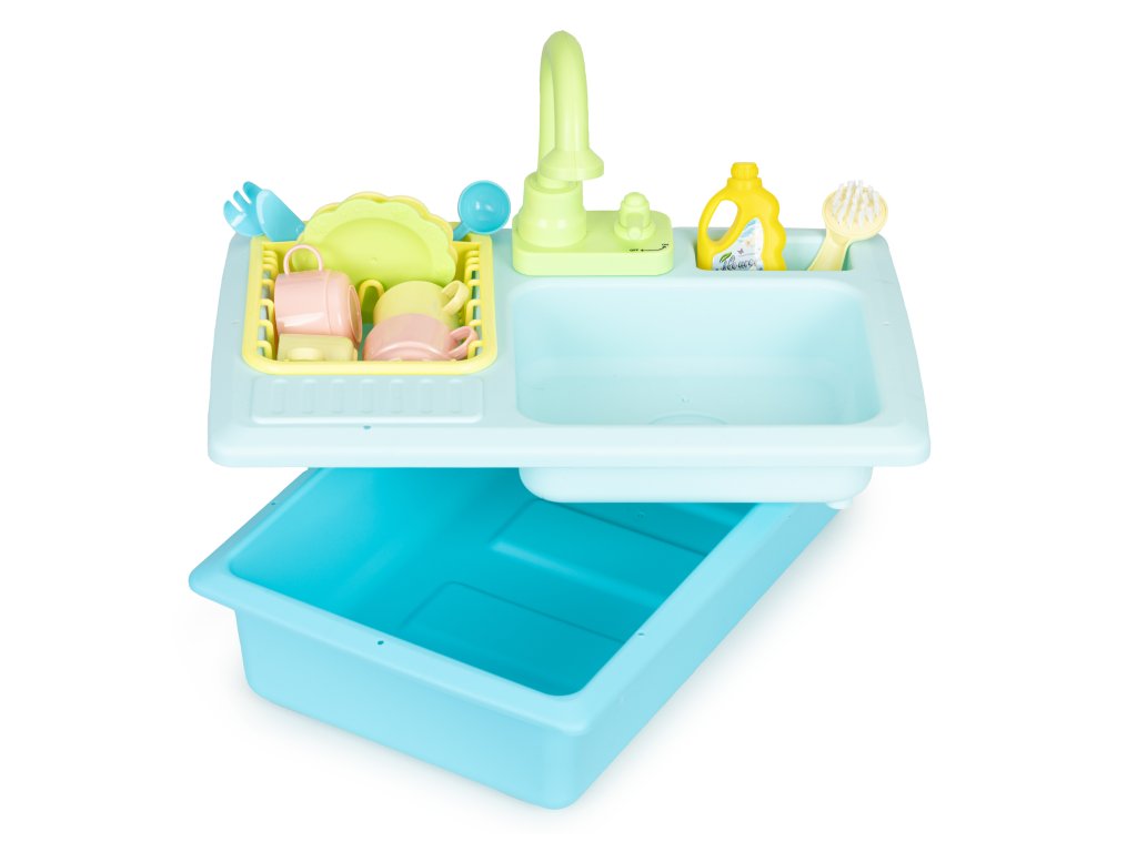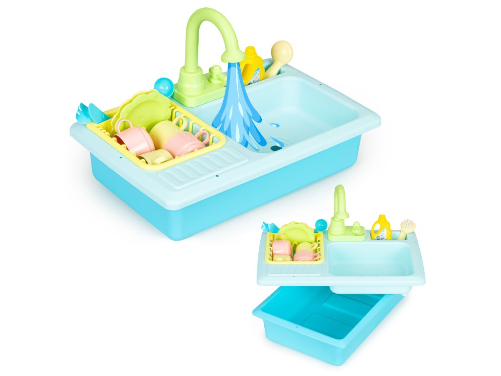 Spojení hry s rozvojem jejich dovedností je tou nejlepší formou učení, díky které je hra nejen poutavá, ale také má pozitivní vliv na manuální zručnost, rozvíjí představivost a učí správným návykům. Věnujte pozornost vývoji svého dítěte a vybírejte hračky, které budou mít vliv na jeho znalosti a rozvoj. Před vámi je jedna taková hračka - umyvadlo s kohoutkem, z něhož teče voda. S touto hračkou si děti mohou vyzkoušet mytí nádobí, procvičí si koordinaci rukou a očí a naučí se mýt nádobí, a především bude mít skvělá zábava při hře s vodou.