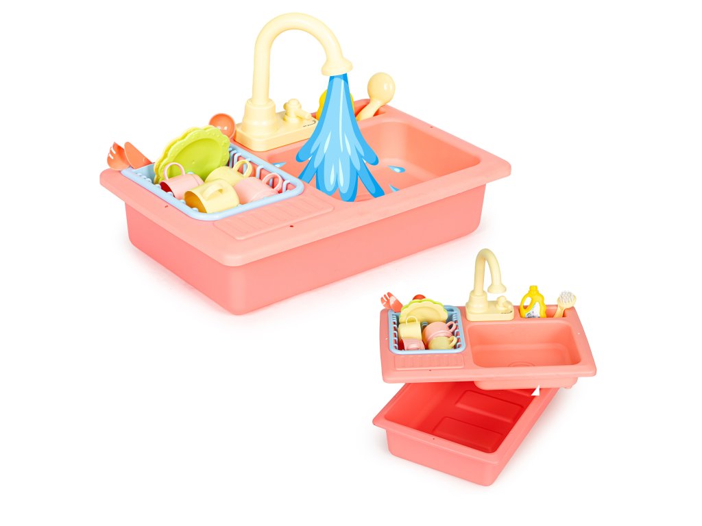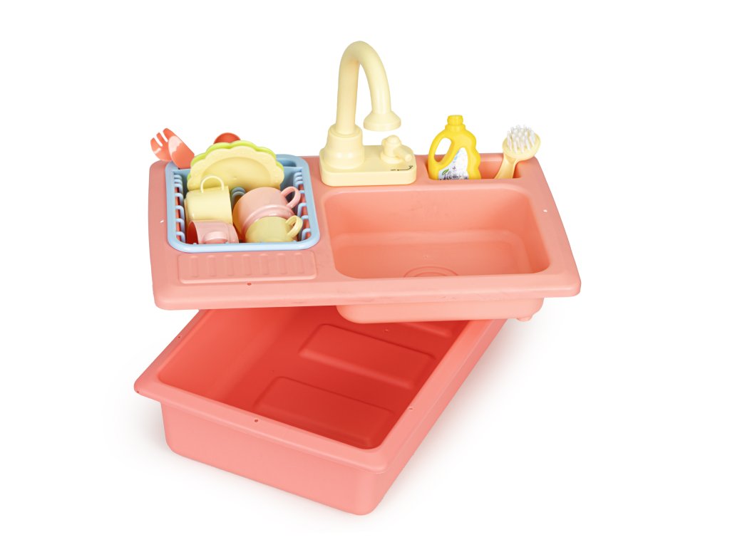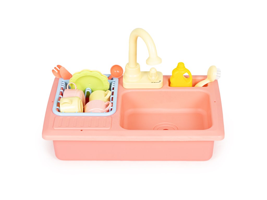 Spojení hry s rozvojem jejich dovedností je tou nejlepší formou učení, díky které je hra nejen poutavá, ale také má pozitivní vliv na manuální zručnost, rozvíjí představivost a učí správným návykům. Věnujte pozornost vývoji svého dítěte a vybírejte hračky, které budou mít vliv na jeho znalosti a rozvoj. Před vámi je jedna taková hračka - umyvadlo s kohoutkem, z něhož teče voda. S touto hračkou si děti mohou vyzkoušet mytí nádobí, procvičí si koordinaci rukou a očí a naučí se mýt nádobí, a především bude mít skvělá zábava při hře s vodou.