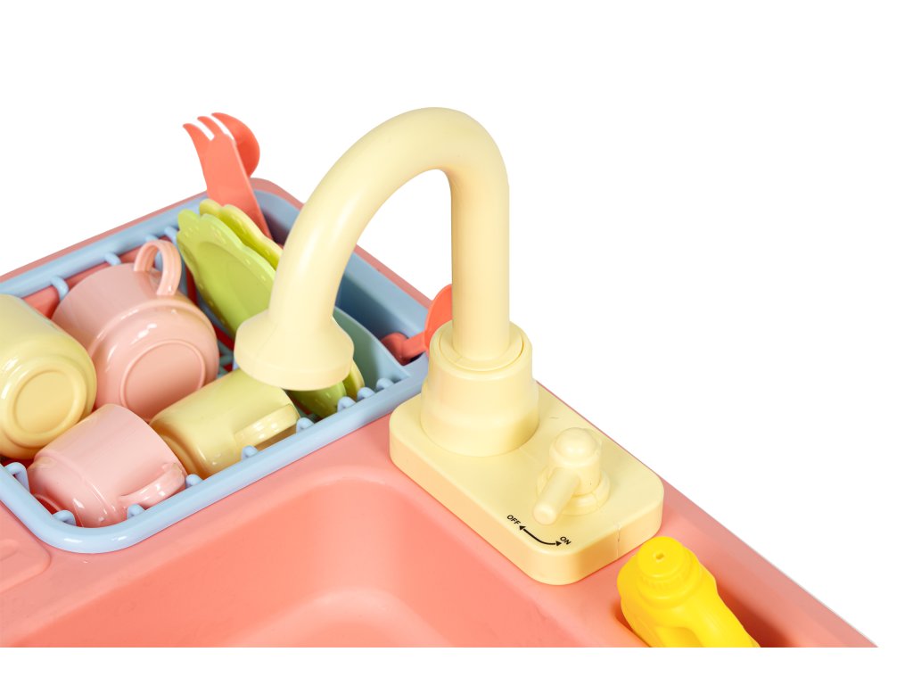 Hračka byla navržený tak, aby napodoboval skutečný dřez v každé kuchyni, díky tomu je hra velmi poutavá. Na pravé straně je zatahovací sušička na odkládání umytých talířů, šálků a příborů a vedle vodovodního kohoutku je umístěna speciální místo pro čisticí kapalinu a kartáček. Hned pod kohoutkem je malý kohoutek, který aktivuje proud vody, která teče do prostoru dřezu a poté do odtoku a mísy, odkud se čerpá zpět do vodovodního kohoutku.