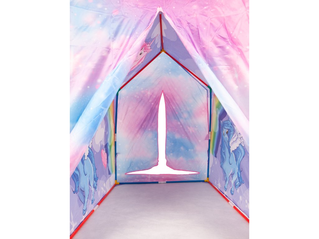 Stan nabízí možnost nezapomenutelných her uvnitř i venku. Pro vaše dítě bude dokonalým útočištěm! Živé barvy a pestré obrázky zaujme každé batole a učiní hru ještě zajímavější. Tvar výrobku připomíná domeček - má střechu. Stan je praktický a snadno se skládá. Díky svému lehkému rámu snadné přenášení z místa na místo.