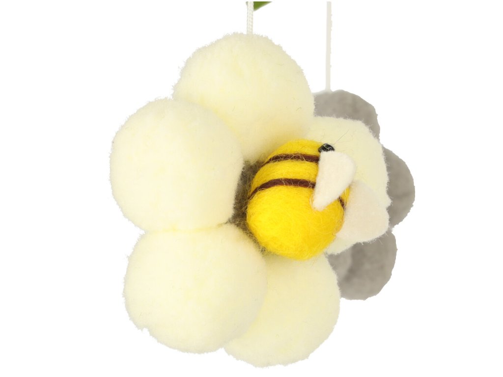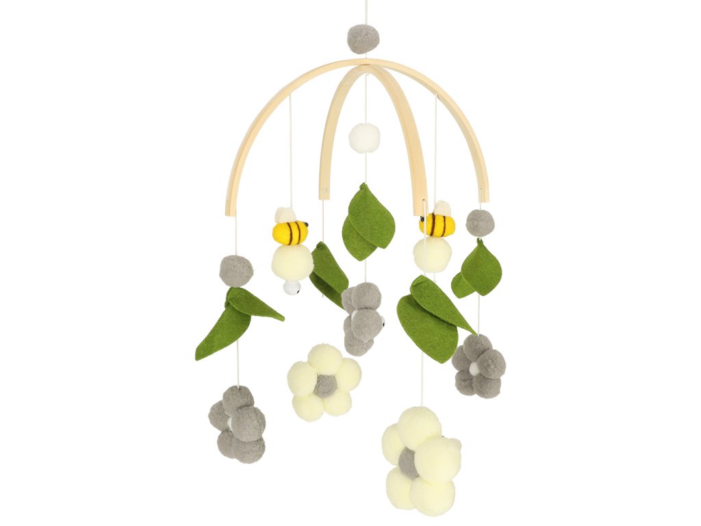 Dřevěný kolotoč bude nejen hračkou vašeho dítěte, ale také jeho součástí krásná dekorace do dětského pokoje . Velké květy a včely spolu se zelenými listy vnášejí do interiéru trochu kouzla a navíc dítě zaujmou svými zajímavými tvary.