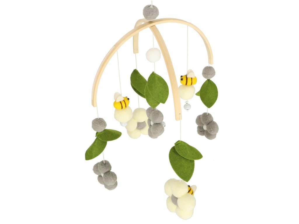 Když uvedete kolotoč do pohybu, žluté včely a nadýchané květy se začnou kývat, čímž upoutají pozornost dítěte a zároveň stimulují jeho zrak. A malé zvonečky jemně zvoní, aby stimulovaly sluch.