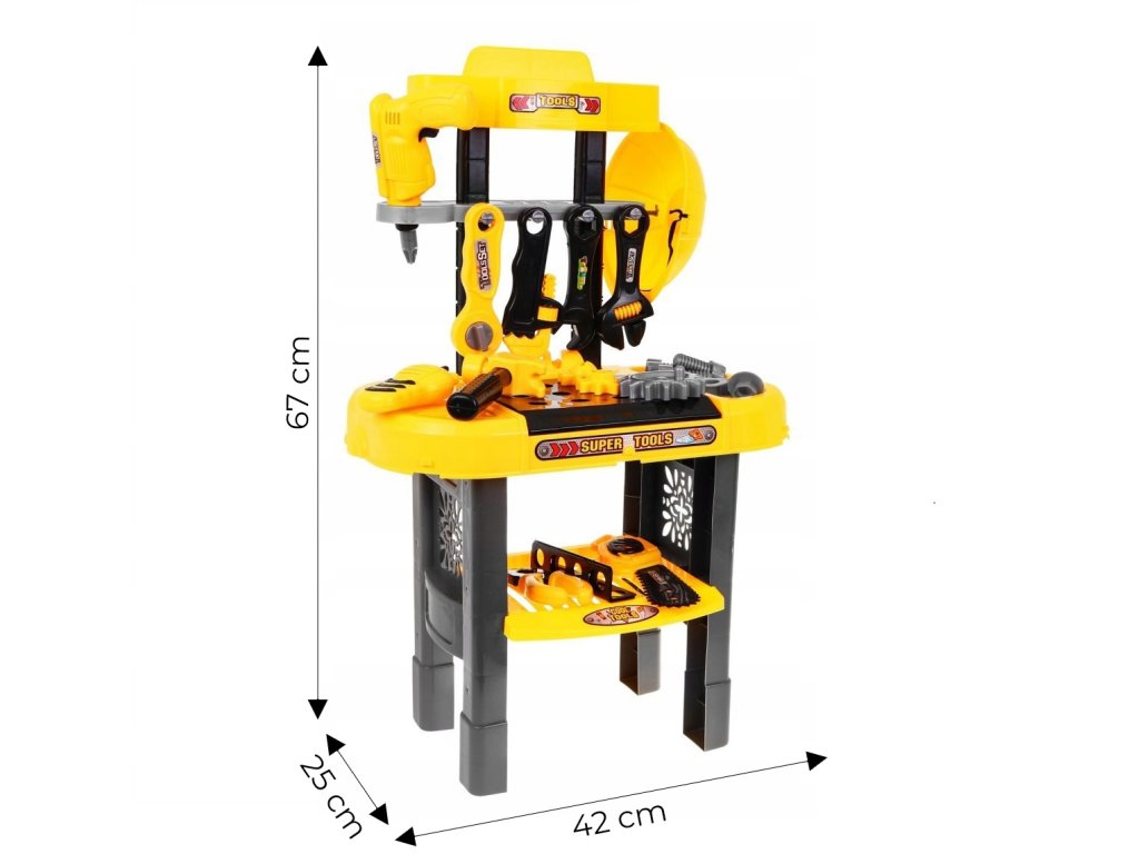 Dětská dílna pro malé mistry! Realistický stojan s 23 díly nářadí. Rozvíjí manuální zručnost a představivost dětí od 3 let. Ideální dárek plný zábavy a vzdělávání. Součástí výrobku je také mnoho dalšího příslušenství.