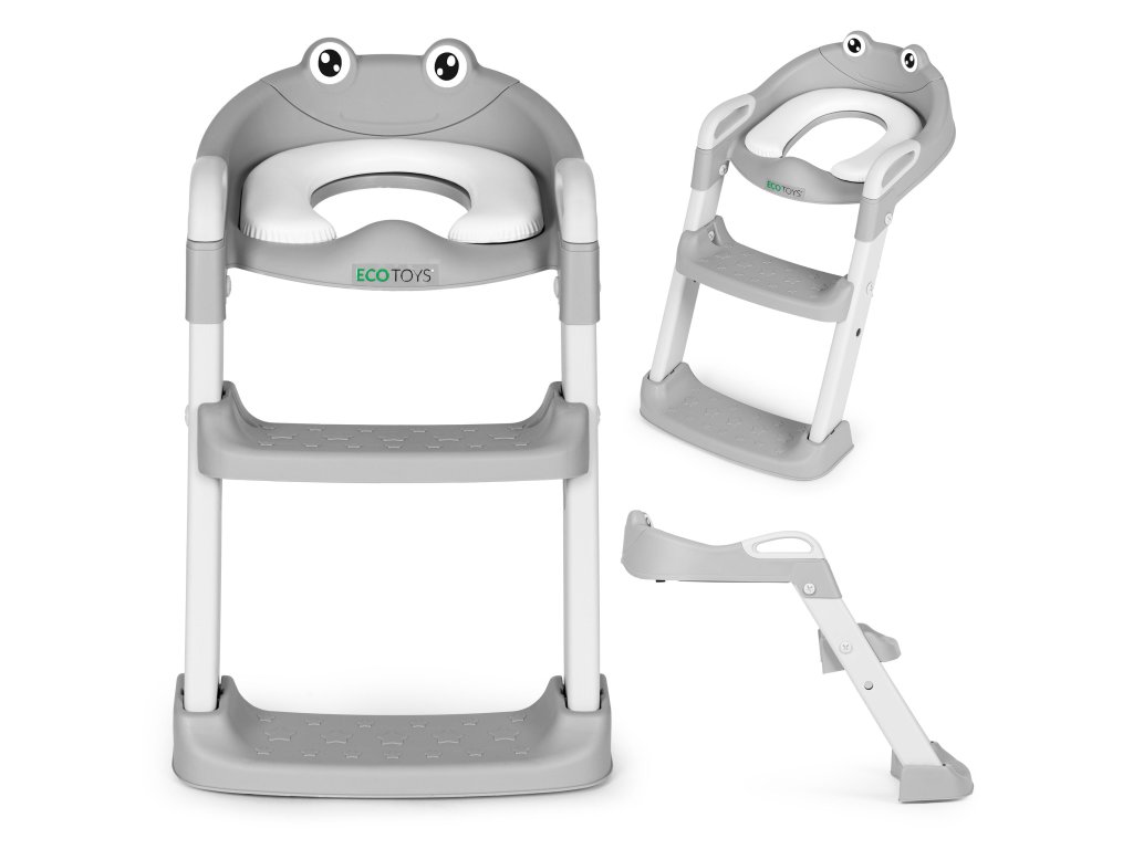 Dětský nástavec na WC se schůdky a madly ECOTOYS, šedý