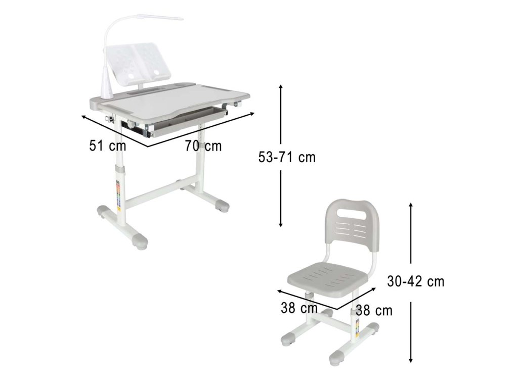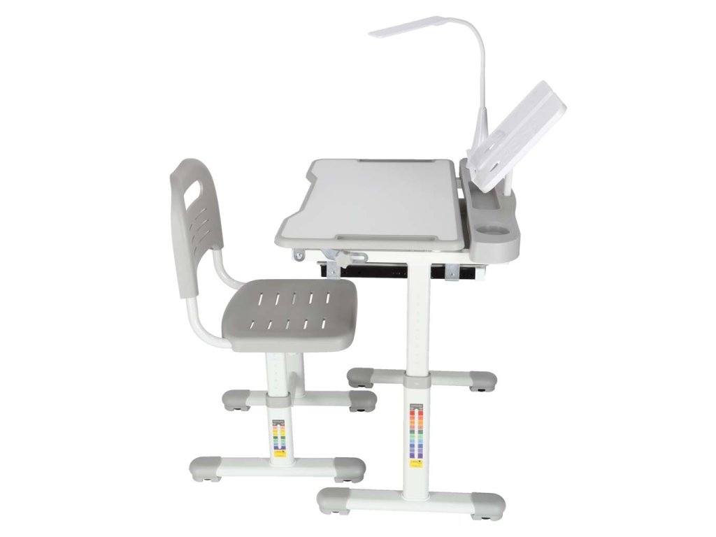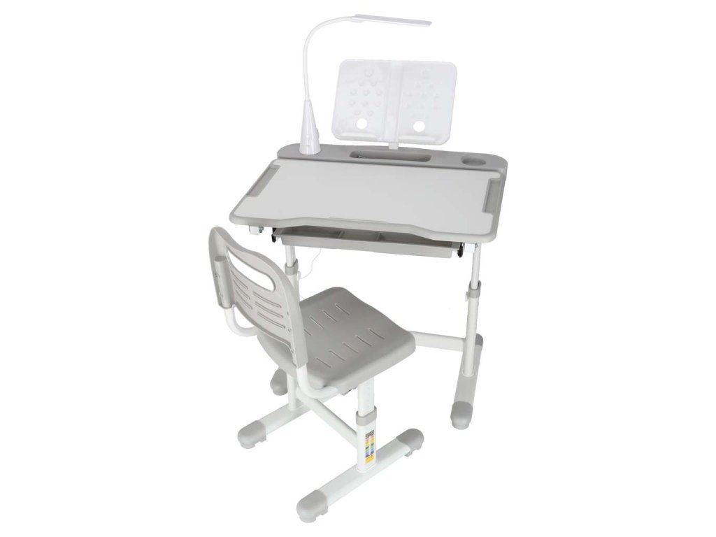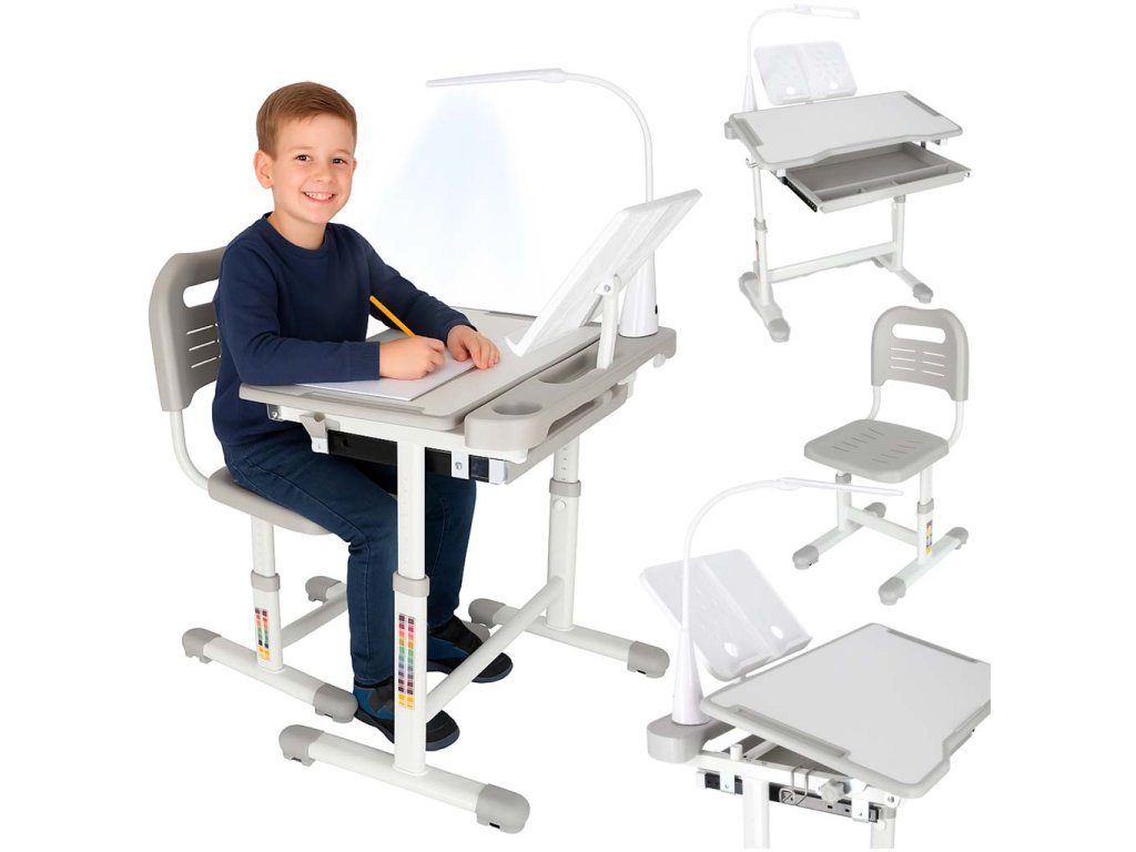 Ergonomický dětský stůl s nastavitelnou výškou, výsuvnou policí a držákem na knihy poskytuje dětem klidný prostor pro učení a cvičení v pohodlí domova. Součástí je také pohodlný, nastavitelná dětská židle s opěradlem. Správně navržený stůl a židle mají významný vliv na zdraví dítěte. Tyto kusy nábytku jsou výškově nastavitelný umožňují, aby rostly spolu s dítětem.