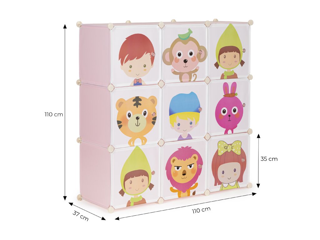 Predstavujeme detskú šatníkovú skriňu, ideálny na uloženie ich milovaných hračiek, kníh a drobností. Táto modulárna skriňa zostáva z 9 políc (modulov) ktoré môžu byť voľne prestavovať prispôsobiť nábytok individuálne potreby a preferencie.