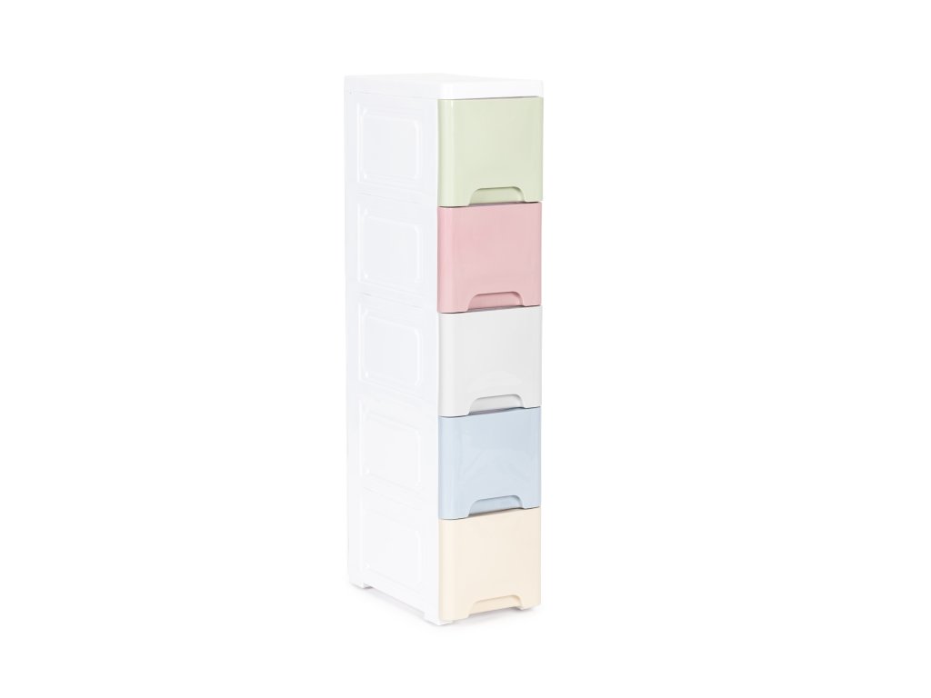 Detský regál na kolieskach s 5 farebnými zásuvkami