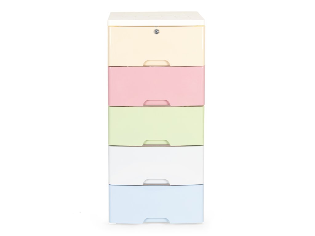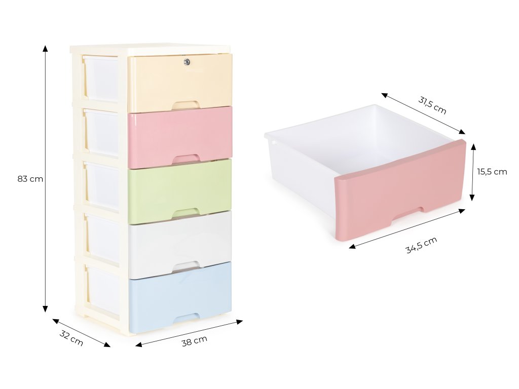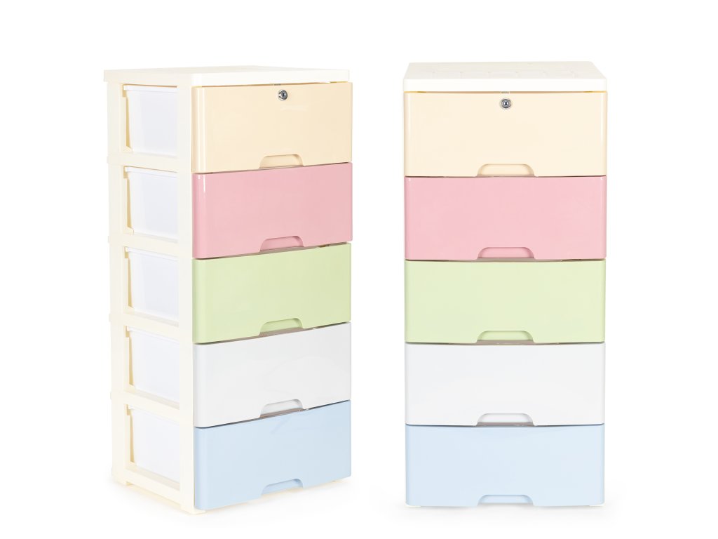Detský regál na kolieskach s 5 zásuvkami a zámkom