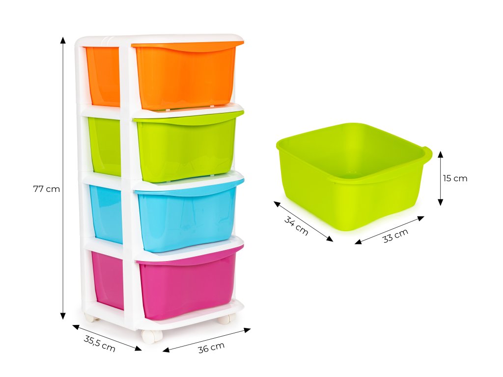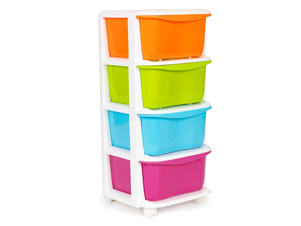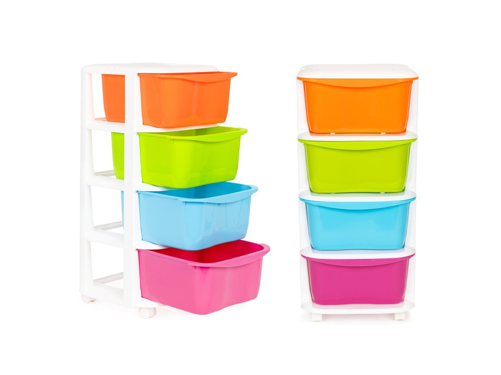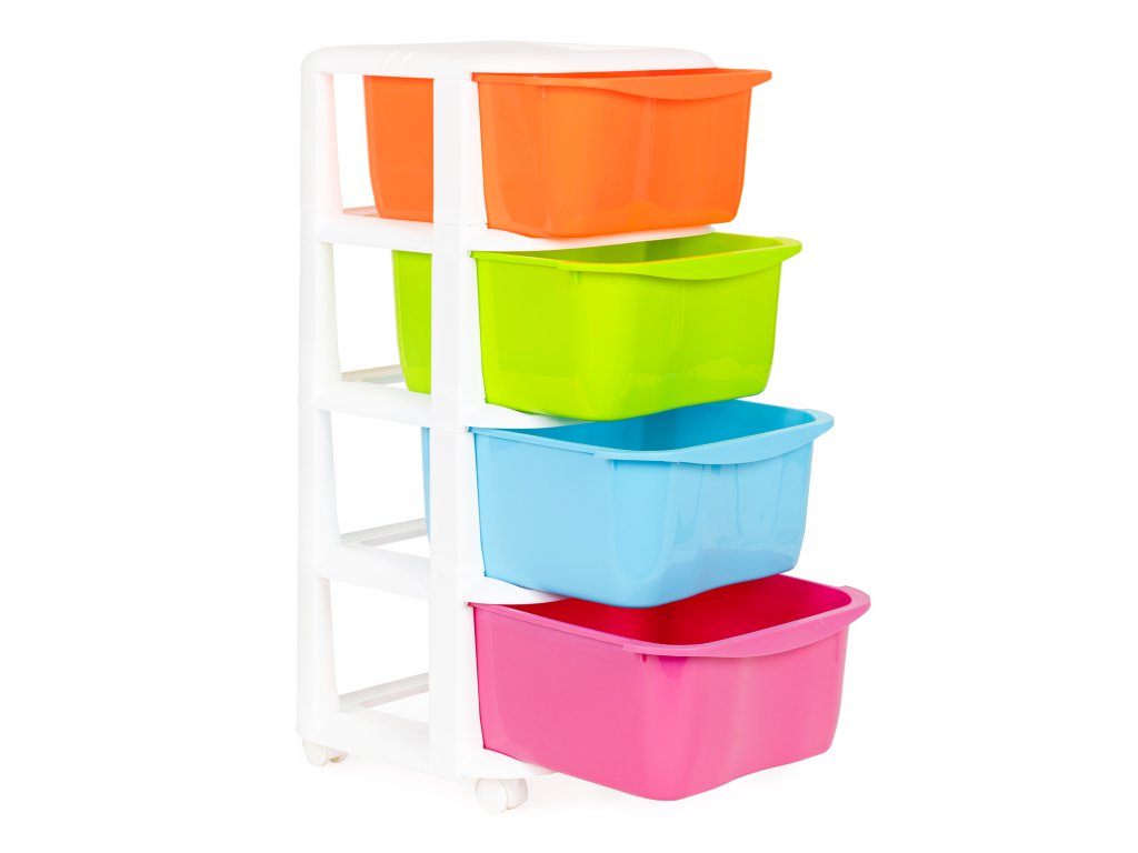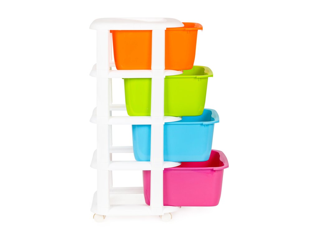 Dětský regál se 4 zásuvkami a kolečky