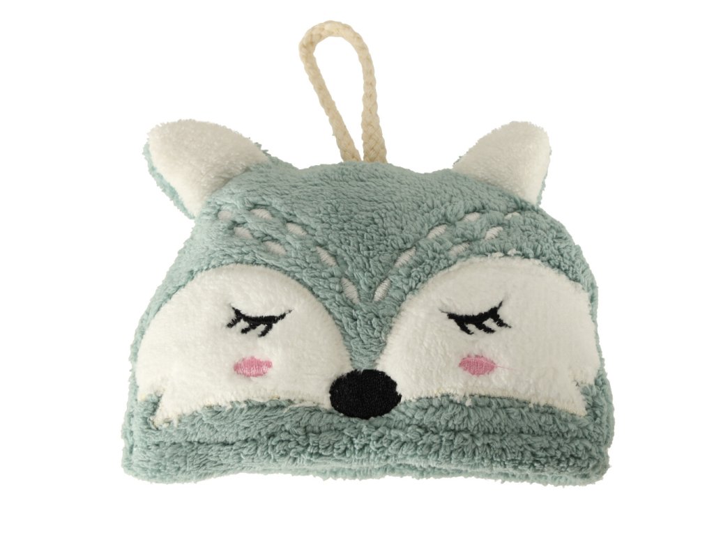 Ručník má praktickou kapsu ve tvaru liščí hlavy která je velmi praktická - můžete do ní schovat ručník na cestách.