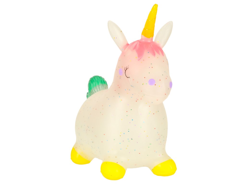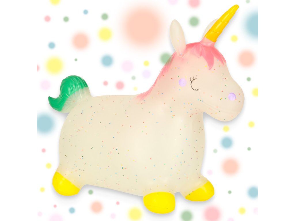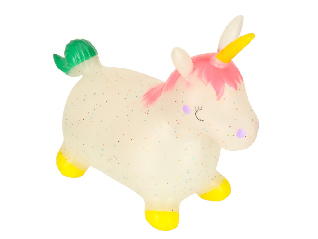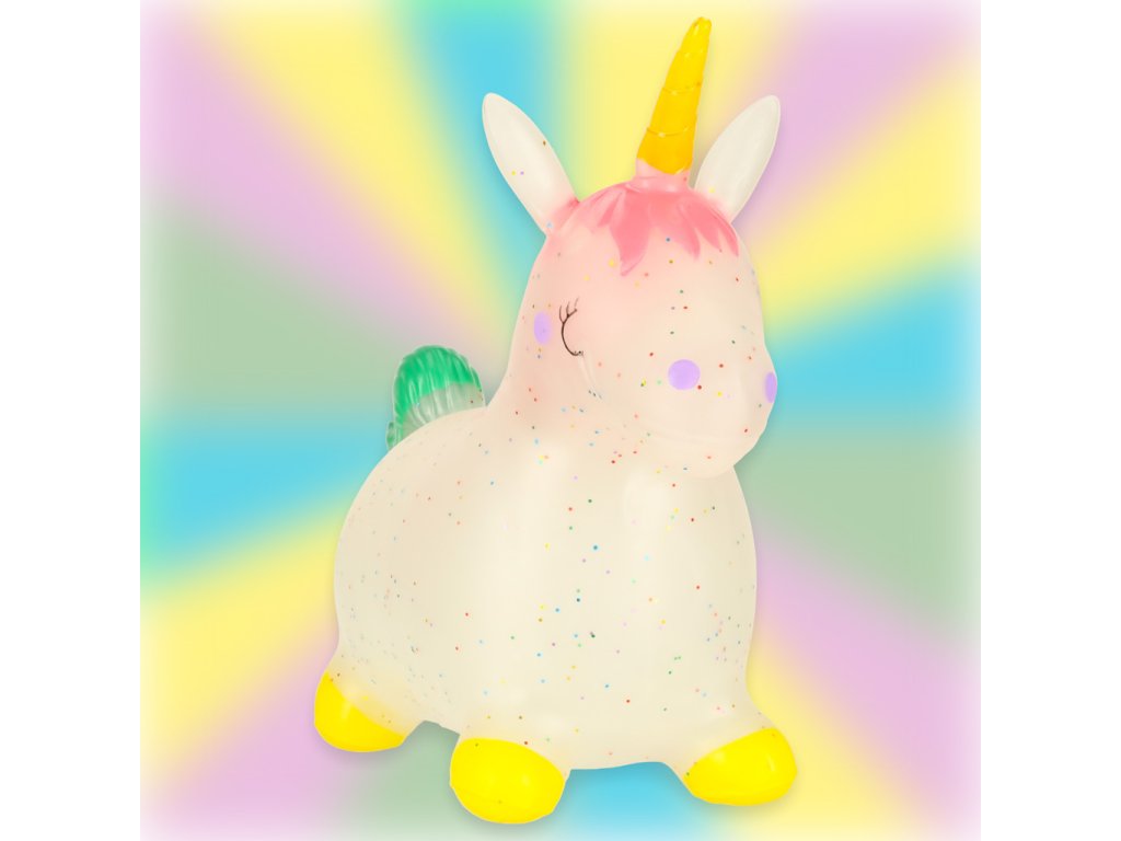 Gumový skákající jednorožec je senzační nápad na dárek k narozeninám, Vánocům nebo ke Dni dětí. Jeho pohádkový vzhled, pastelové barvy s přídavkem barevných flitrů si děti zamilují! Skákající jednorožec poskytuje nejen skvělou zábavu, ale má také pozitivní vliv na psychomotorický vývoj.