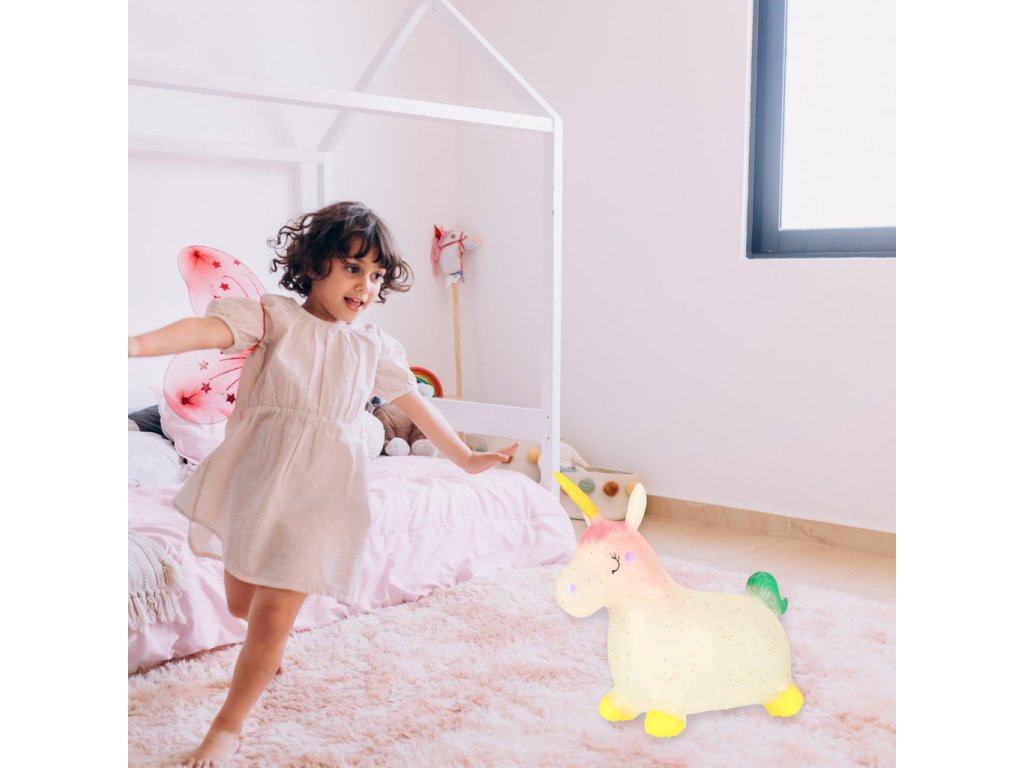 Naše dětská skákací hračka s jednorožcem se skvěle hodí do interiéru i exteriéru - na balkon, na zahradu nebo dokonce na pláž. Je to lehká a mobilní hračka, kterou lze snadno kamkoli přenést. Gumový skákací jednorožec je vhodný na hraní v dětském pokoji, v dětském pokoji nebo na hřišti.