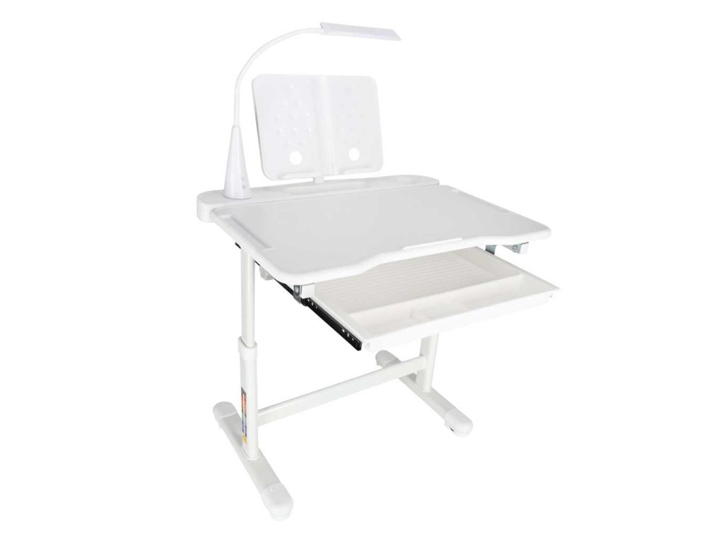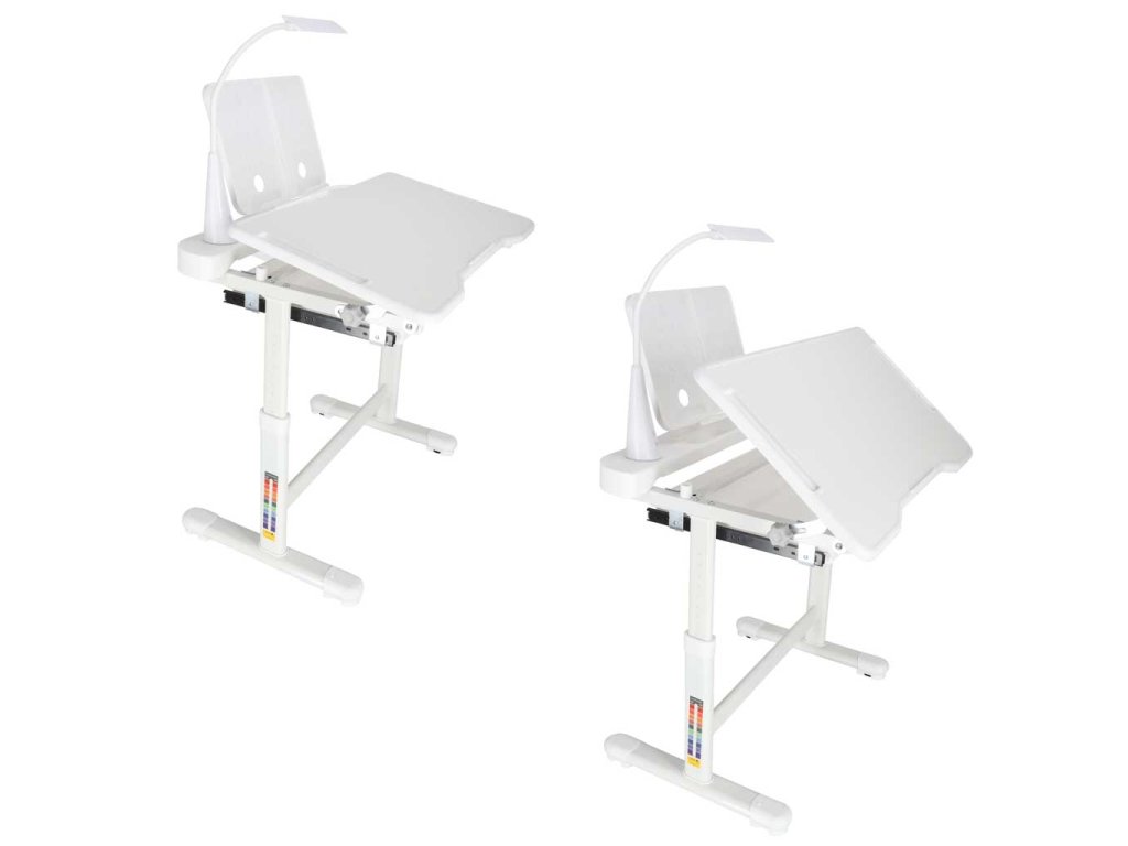 NASTAVITEĽNÝ DETSKÝ STÔL S LED OSVETLENÍM - ERGONOMICKÝ DETSKÝ STÔL BIELY + STOLIČKA A LAMPA