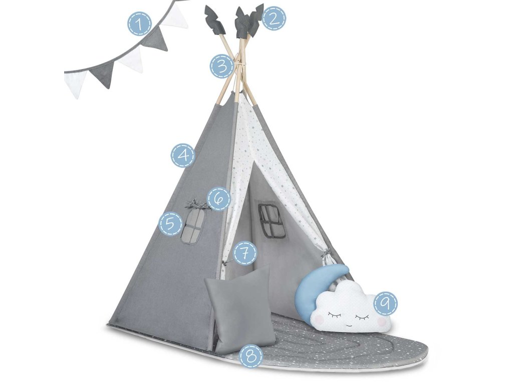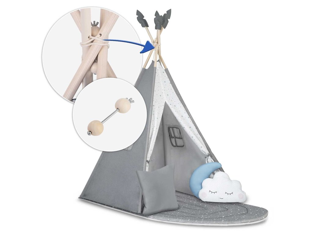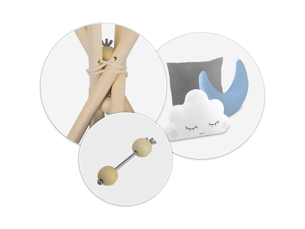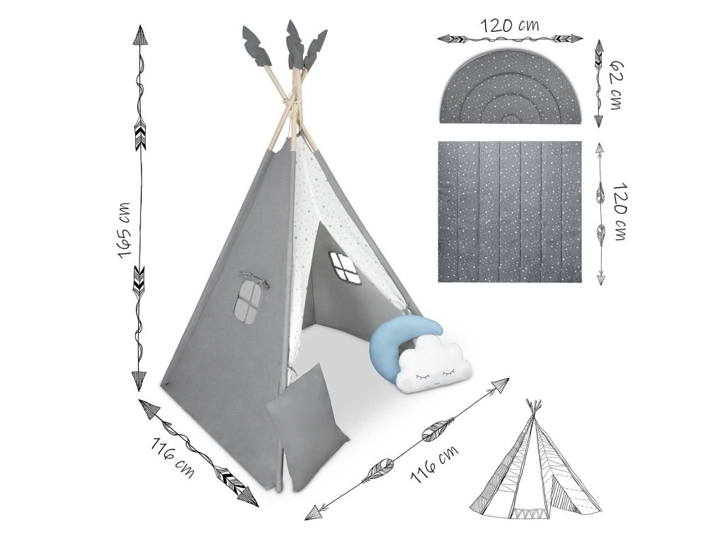 Každý TIPI je dodáván ssada 3 polštářů viditelné na fotografii (čtverec, měsíc a mrak)!