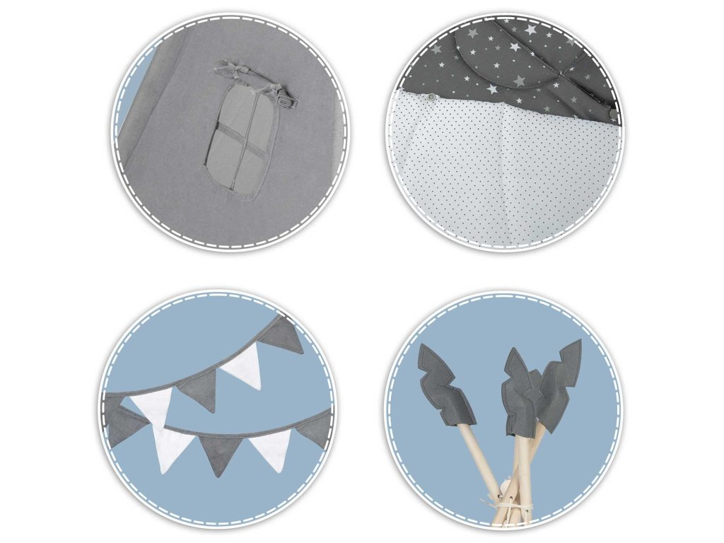 Vysokáhmotnost stěny 175 g/m2 zajišťuje, že teepee je mimořádně měkké, odolné a připravené na ta nejzajímavější dětská dobrodružství.