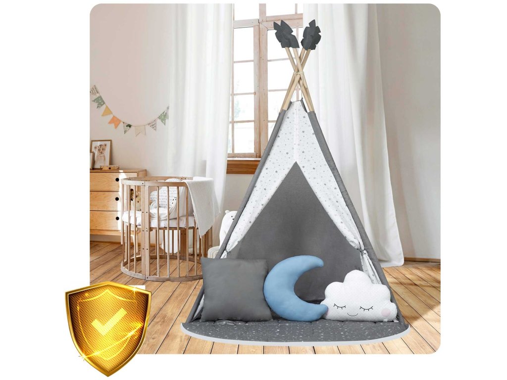 Dětský stan ve tvaru indiána TIPI doplní výzdobu dětského pokoje.
