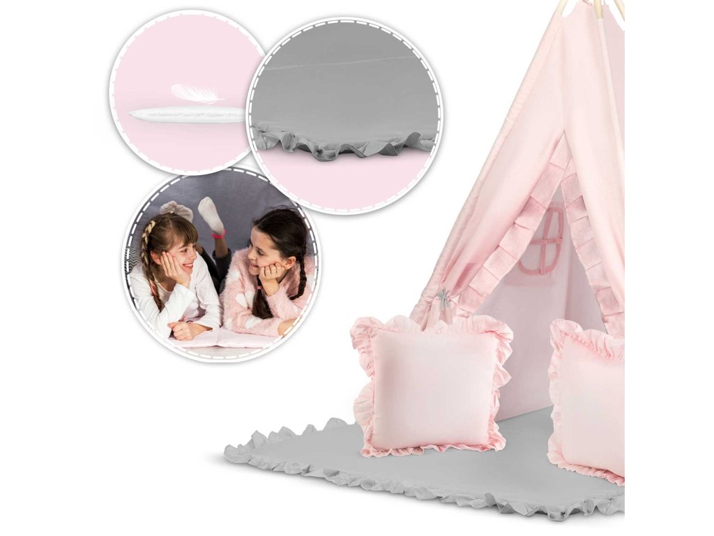 Pro ještě větší zábavu je týpí dodáváno s polštáře a velmi silné izolační rohože vybavenýprotiskluzové výstupky.
