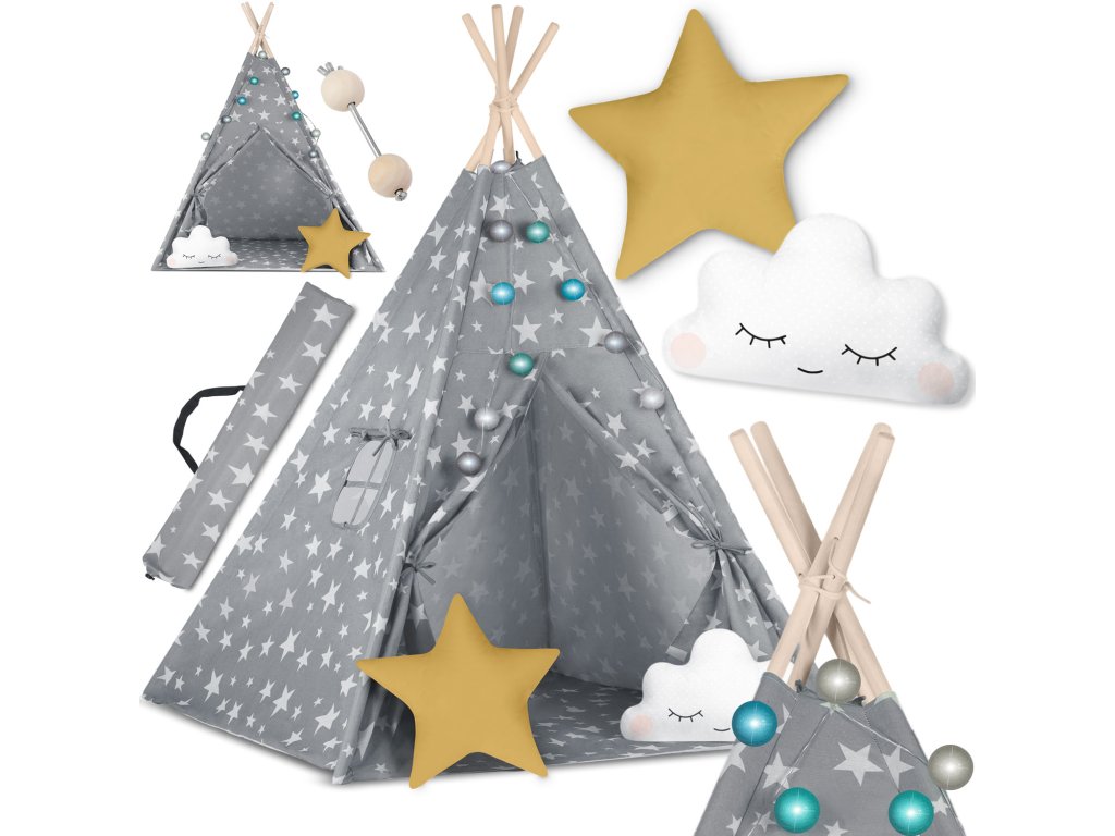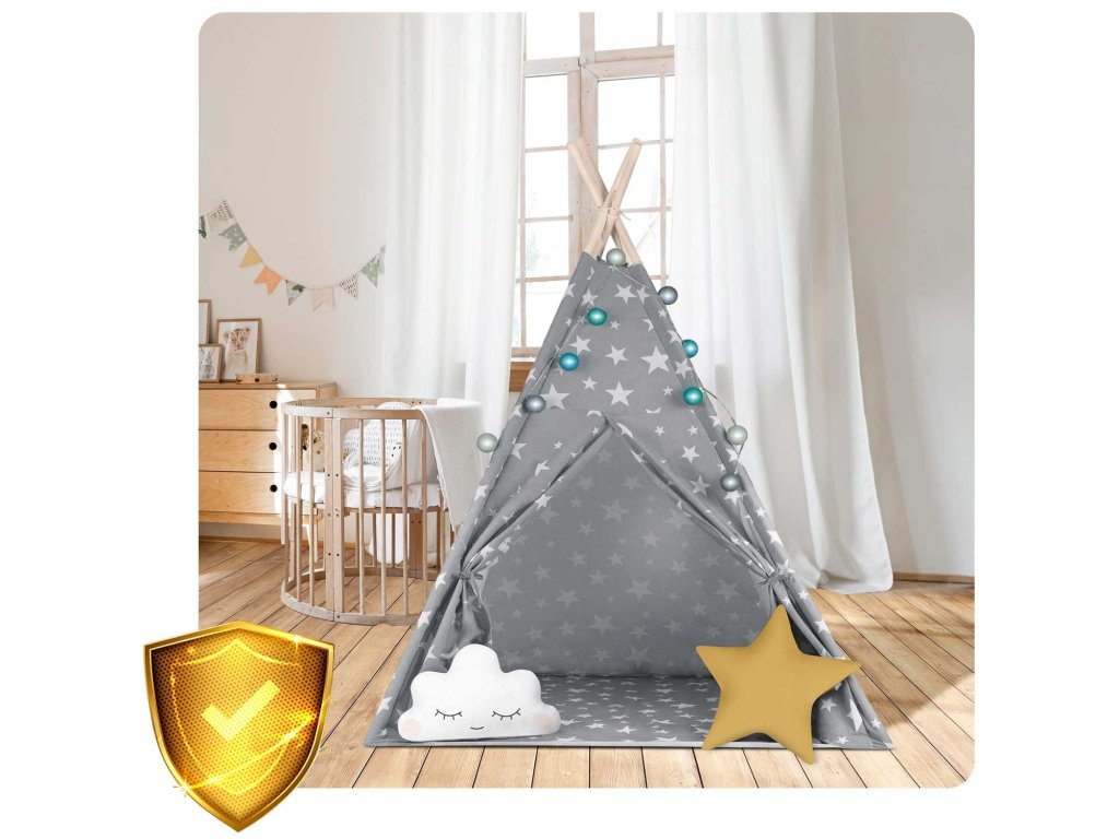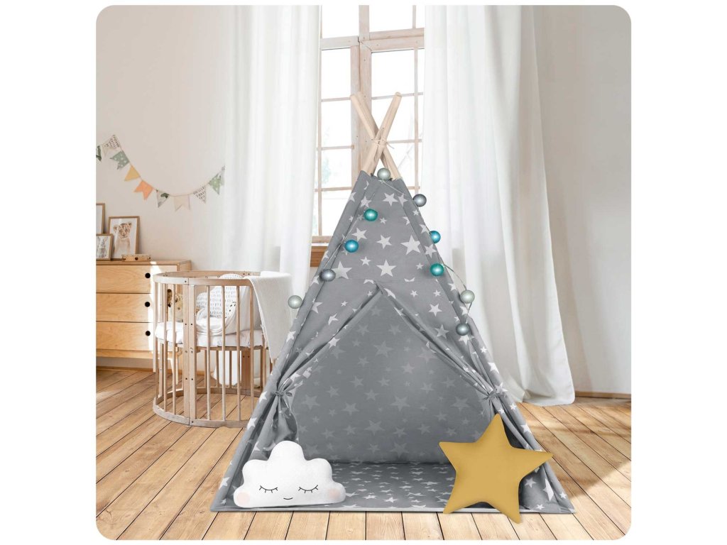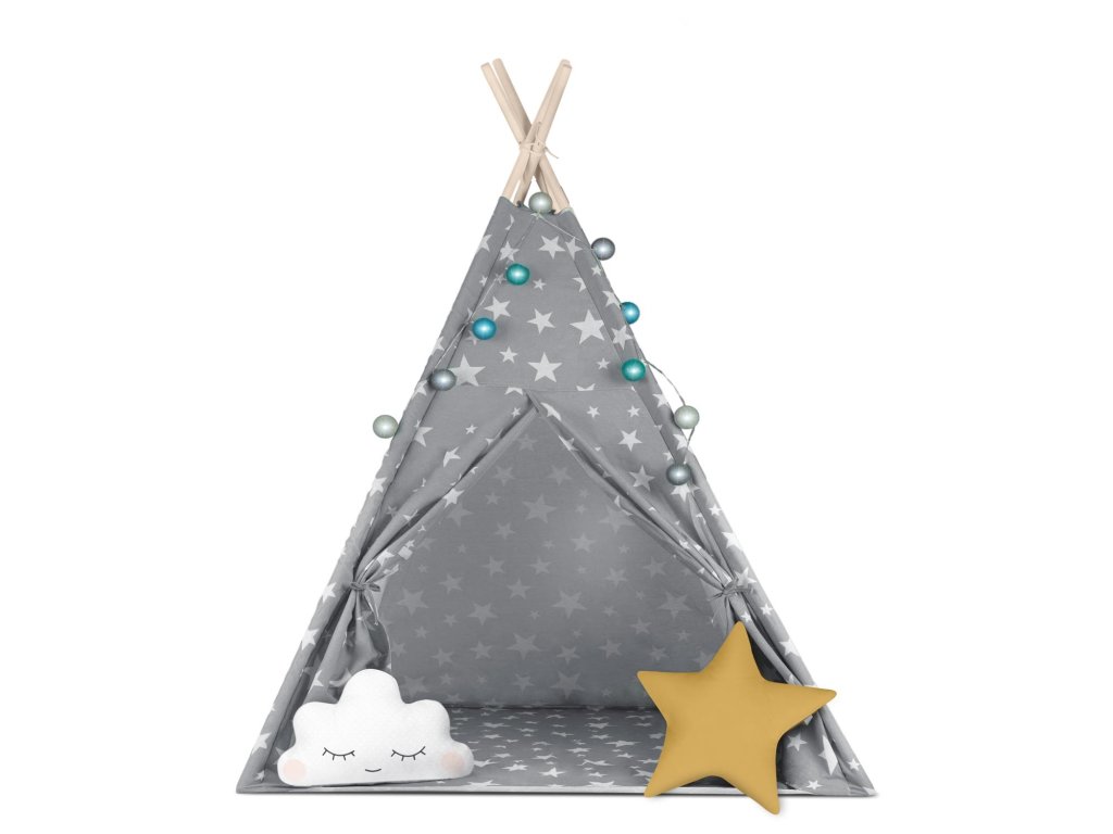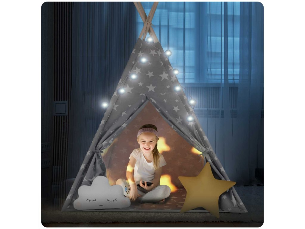 Dětský stan Nukido se světlem - šedý s hvězdami