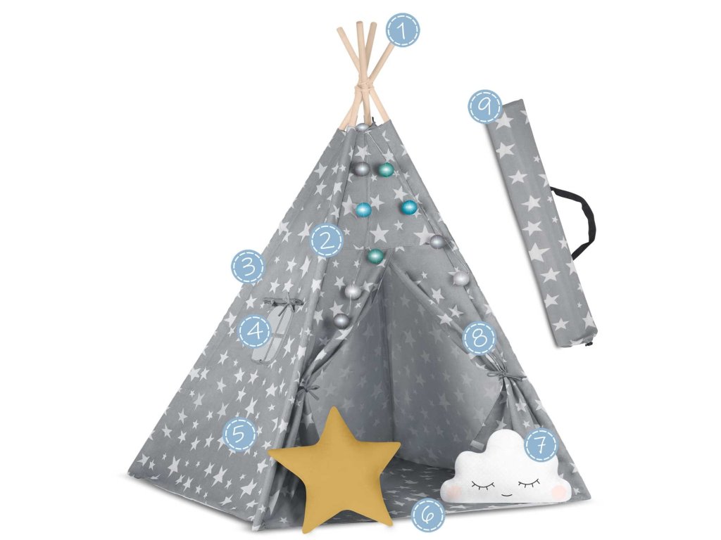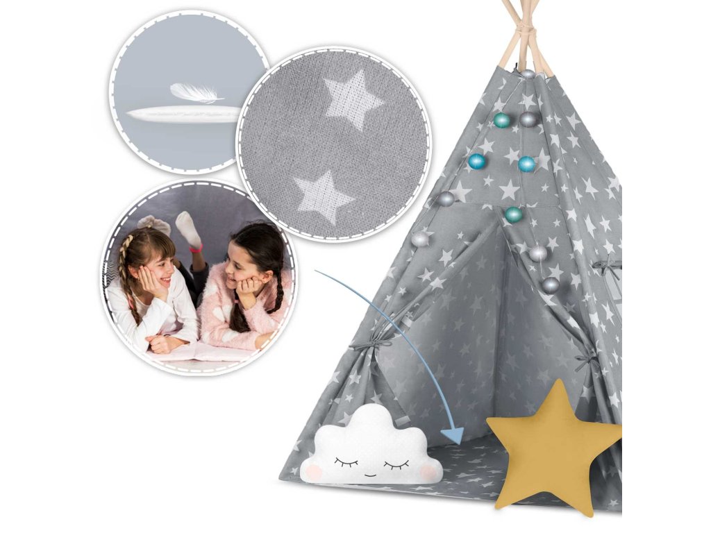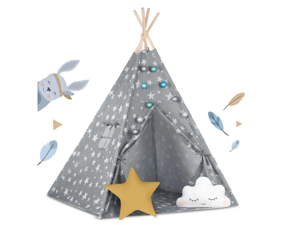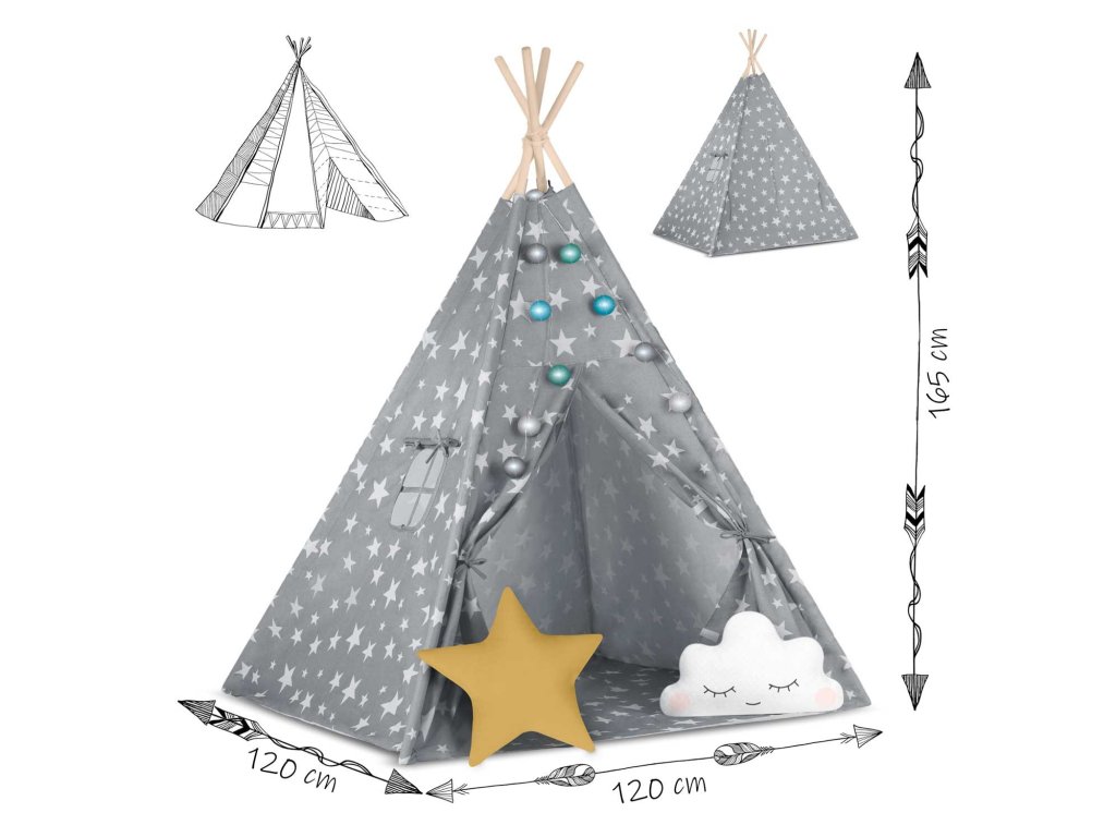 Aby bylo hraní ještě zábavnější, je týpí dodáváno s polštáře z kvalitní bavlny a šitá podlaha obsahuje,