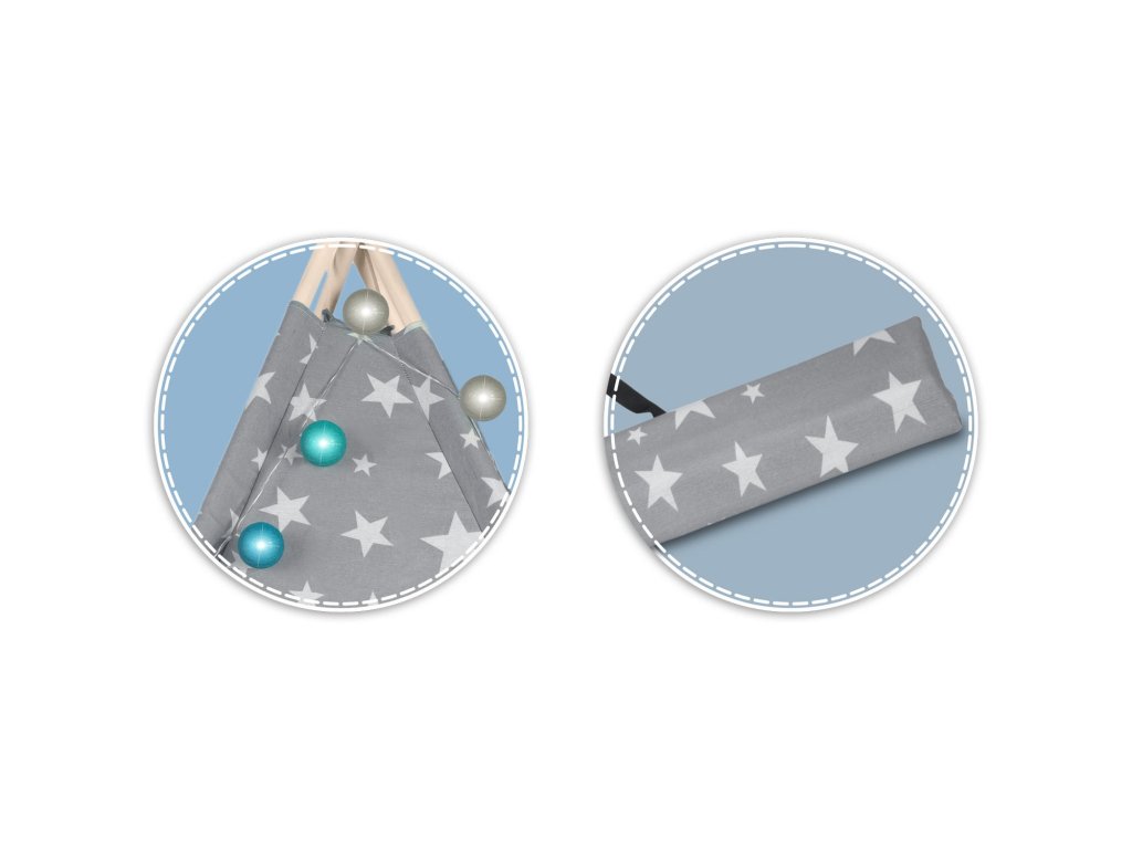 Vysokáhmotnost stěny 175 g/m2 zaručuje, že teepee je extrémně měkké, odolné a přežije i ta největší dětská dobrodružství.