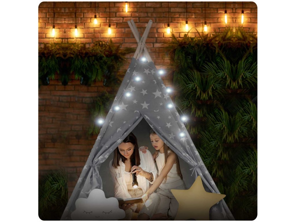 Každý TIPI je dodáván se stylovými světly a obalem na stan ZDARMA!