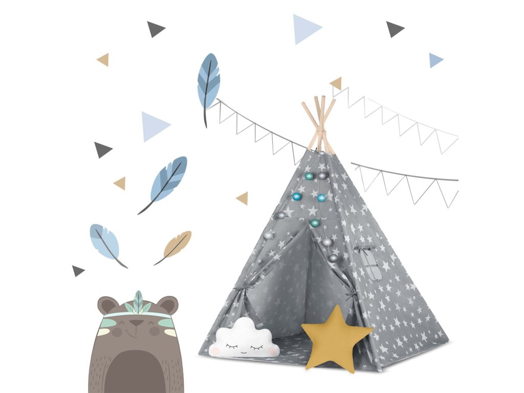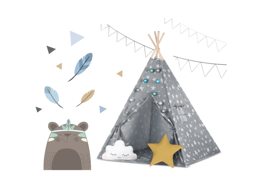 Dětský stan ve tvaru indiánského teepee jeRozložení místnosti HIT yow pro děti.