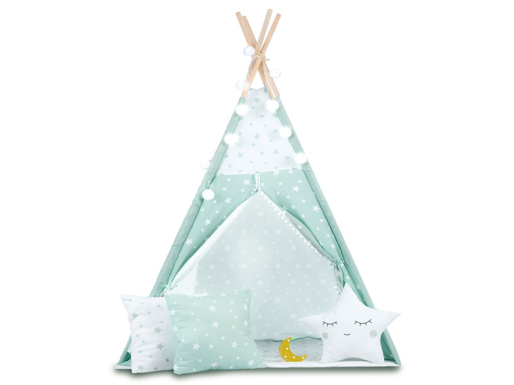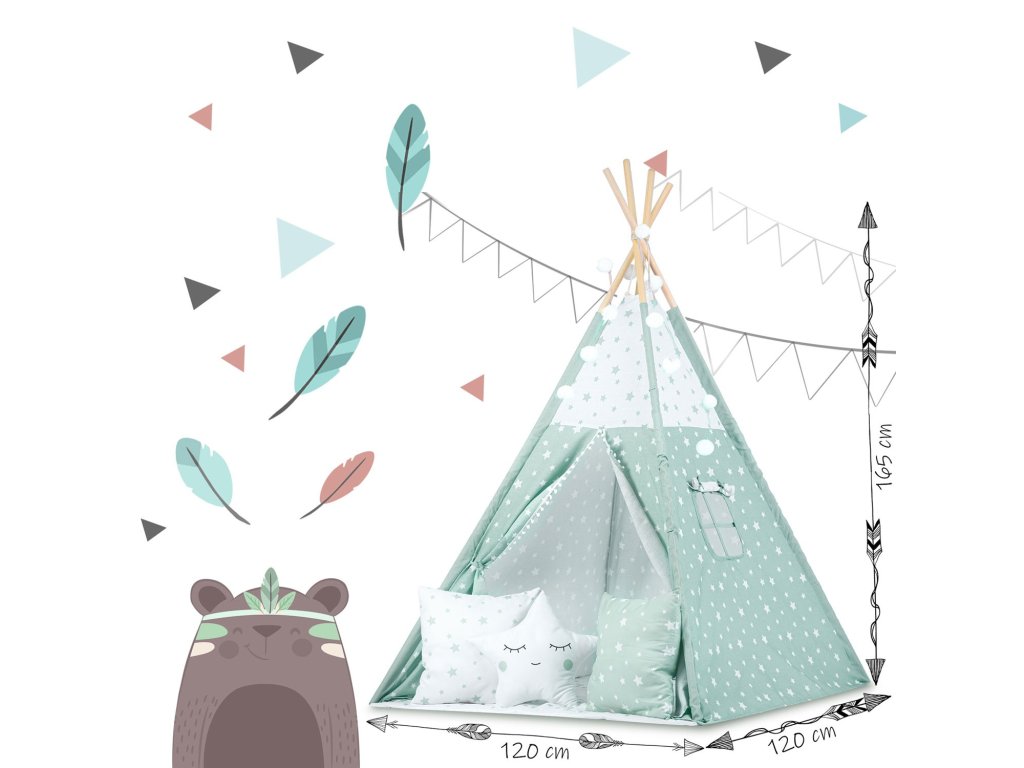 Dětský stan ve tvaru indiánského teepee jeRozložení místnosti HIT yow pro děti.