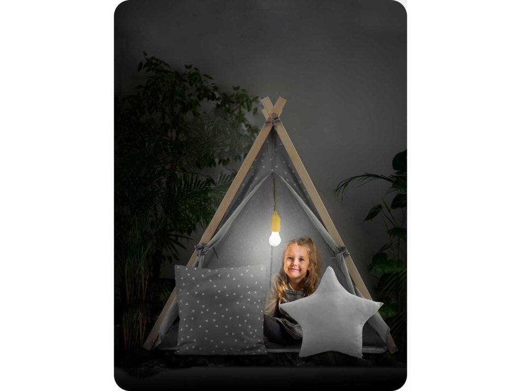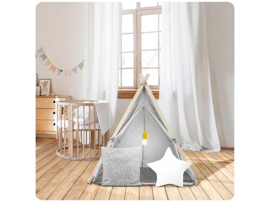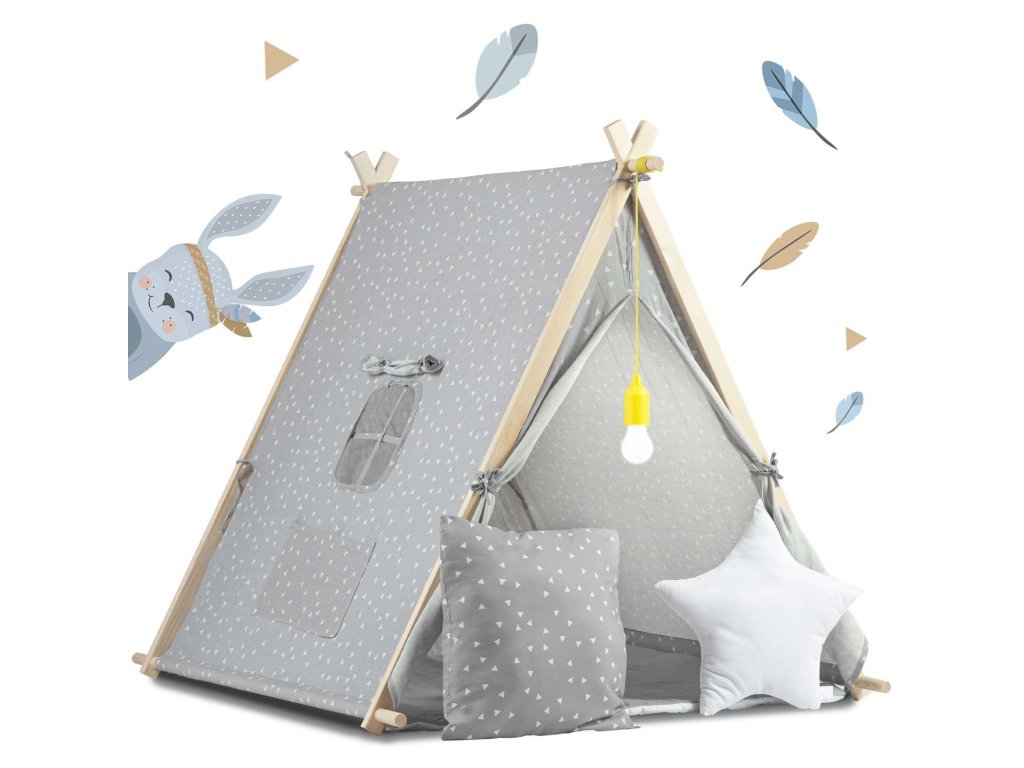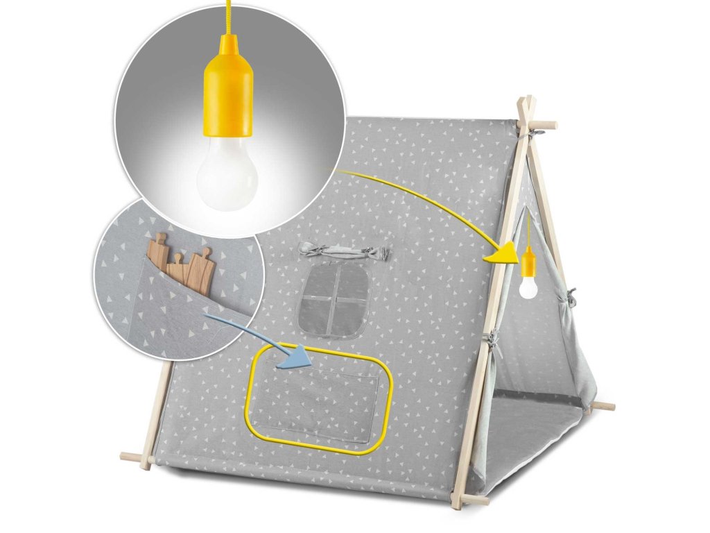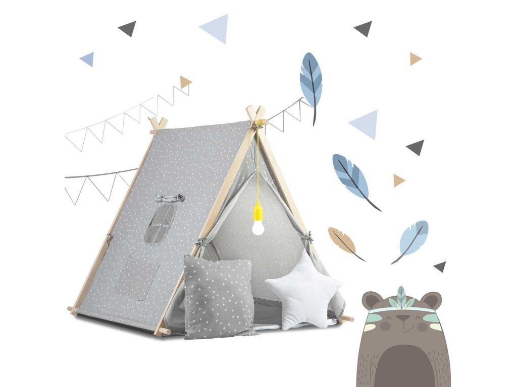 Dětský stan ve tvaru indiánského teepee jeRozložení místnosti HIT yow pro děti.