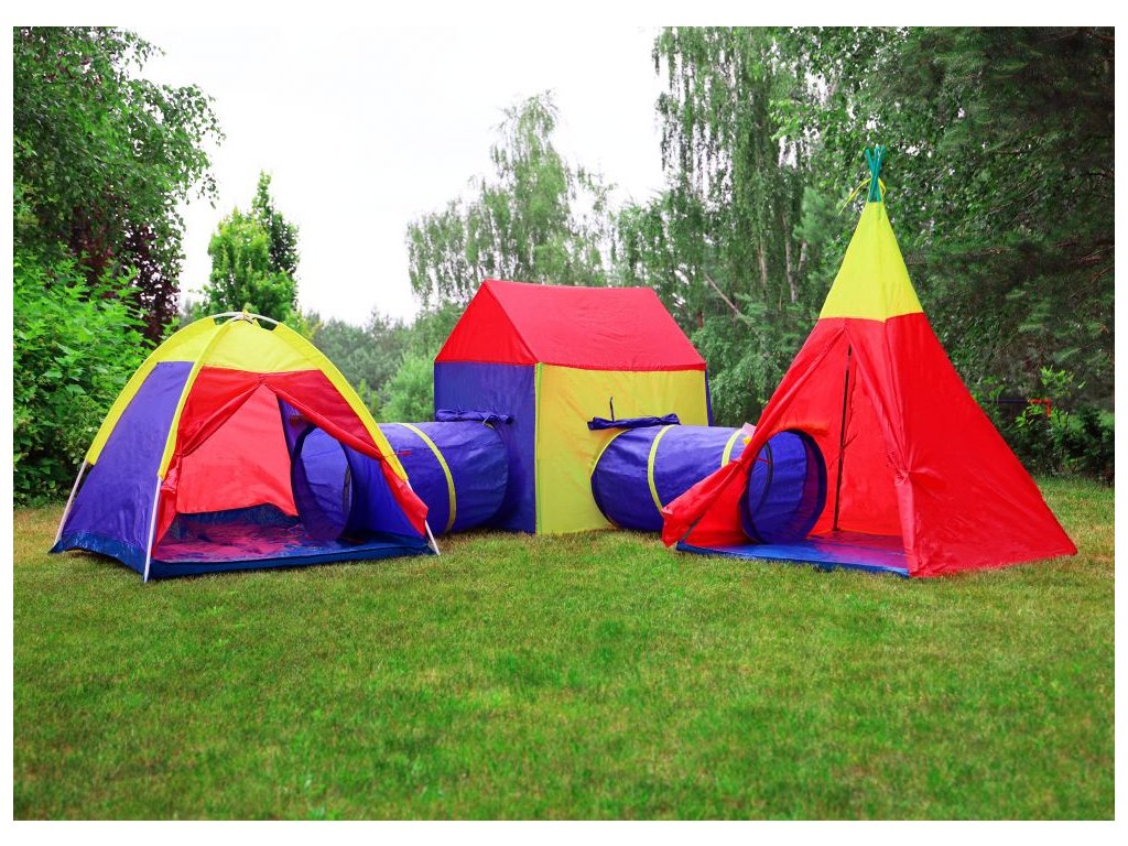 Detský stan set 5v1 IPLAY – domček, tipi, iglu a tunely