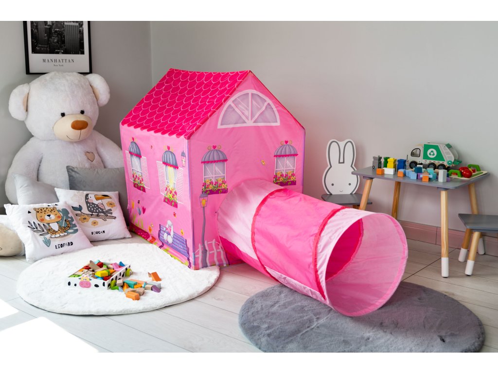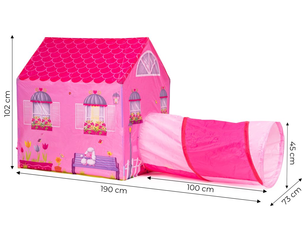 Stan nabízí příležitost k nezapomenutelné zábavě, bude dokonalý úkryt a místo pro skvělá dobrodružství. Zářivé barvy a pestré obrázky zaujmou každé batole a přimějí je bude zábava ještě zajímavější. Výrobek má tvar domku, na jedné ze stěn je vchod s rolovacím závěsem. Díky lehkému rámu snadné přenášení z místa na místo.